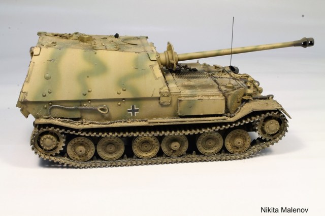 приводить боковик в качестве оригинала, как бы неуместно, хотя камуфляж на этом боковике соответствует действительности, в отличии от модели автора, как по мне, крупные сколы, антенна в виде проволоки, нет следов газорезки, портят общее впечатление от работы