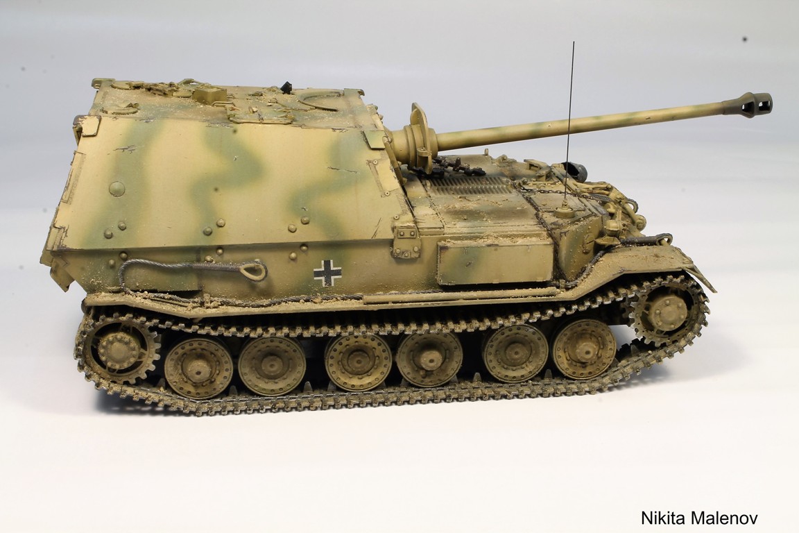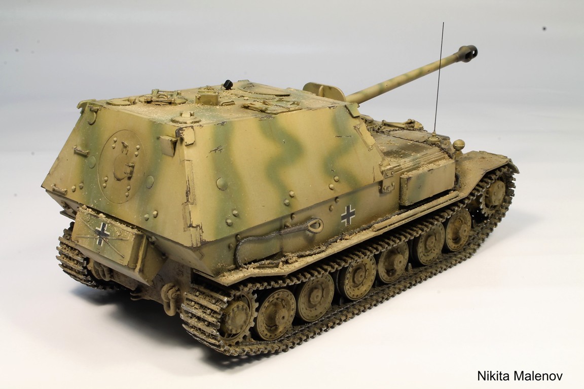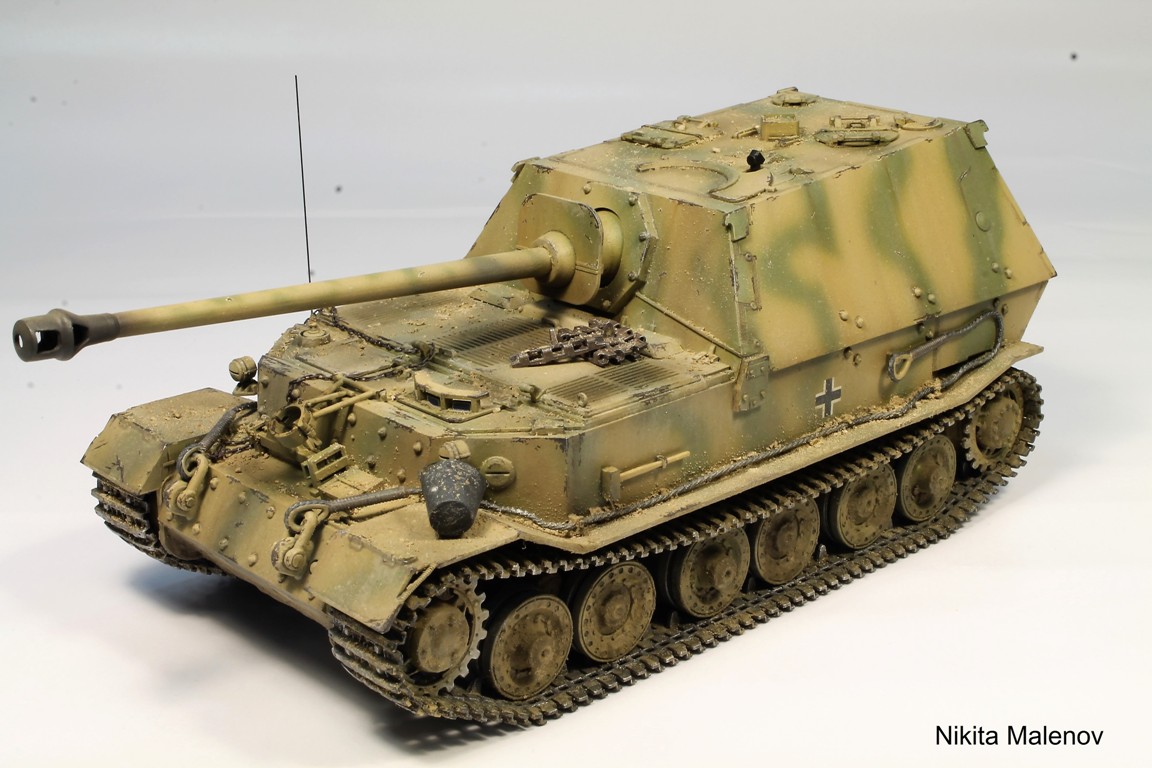 Доброго времени суток, Господа! О модели кратко - подразочаровался, не уровень новинки конца 2017 года. Хотя, в целом не дрова. Сборка изкоробки, кроме фурнитуры и дополнительных водоотводов. Был выбран прототип Фердинанда из из состава резерва 3-й роты 653-го батальона тяжелых истребителей танков. Красил красками ARM.PNT. Химия AMMO Mig, особенно рекомендую их смывки и химию MUD, потрясающая штука, цвета сколов и ручка кувалды - миг, металлик Gunze (Mr.Hobby).