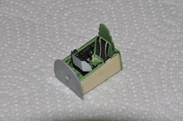 Прототипом модели выбрал самолет командира 150 авиакрыла, wingcomander Roland P. Beamont, авиабаза Ньючерч, Великобритания, июнь 1944 года. 8 Июня 1944 г. Роланд Бьюмон открыл счет победам «Темпеста», сбив над Францией Bf-109G. Летая на «Темпестах», он впоследствии сбил 31 ФАУ-1. Однако, довоевать до конца войны он не смог - 12 октября 1944 г. его самолет получил попадание в радиатор, и он вынужденно сел в немецком тылу. Семь месяцев Бьюмон просидел в лагере для военнопленных. Работу с моделью начал стандартно – собрал кабину пилота. Из «отсебятины» только декальный будильник на компас и некоторые рукоятки управления из проволоки. Затем сборка фюзеляжа. Состыковалось все более-менее неплохо. Углубил расшивку. Из тянутого литника сделал уплотнение для сдвижной части фонаря кабины пилота. Из прозрачного оргстекла изготовил БАНО, расположенные в районе стабилизаторов. На триммер РН сделал привод (травление из запасов, обтекатель приводы вытянул зубочисткой из крышки от сметаны). Наиболее трудоемкой оказалась подгонка нижней половины крыла на свое место. Щели в районе водорадиатора полностью устранить у меня не получилось – пришлось повозиться со шпаклеванием и последующим шлифованием. Монтаж верхних половин крыла на свои места тоже прошел не без проблем. Опять шпаклевание, шлифование, возня с задней кромкой (с ее заострением), затем восстановление погибшей расшивки – полный комплект развлечений. В крыле вырезал отверстия гильзо- и звенье-сбросов. Крыльевые БАНО также сделал из прозрачного оргстекла, сделал имитацию лампочек. Затем как обычно – посадил их на супер-клей, обточил и отполировал. Ниши основных стоек шасси немного дополнил проводкой из проволоки 0,3 мм.