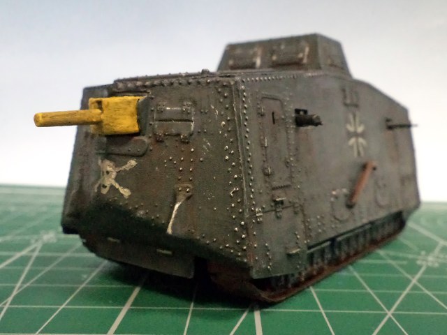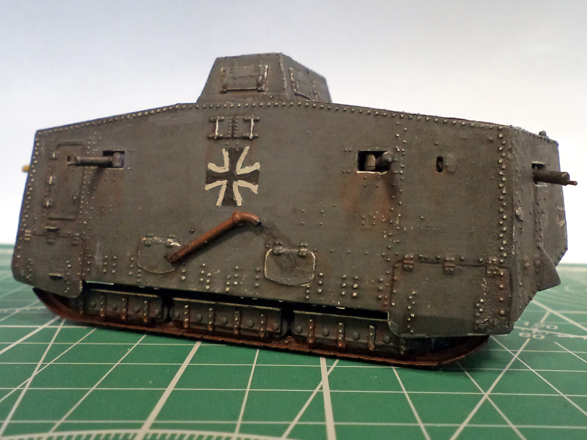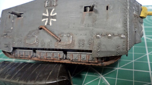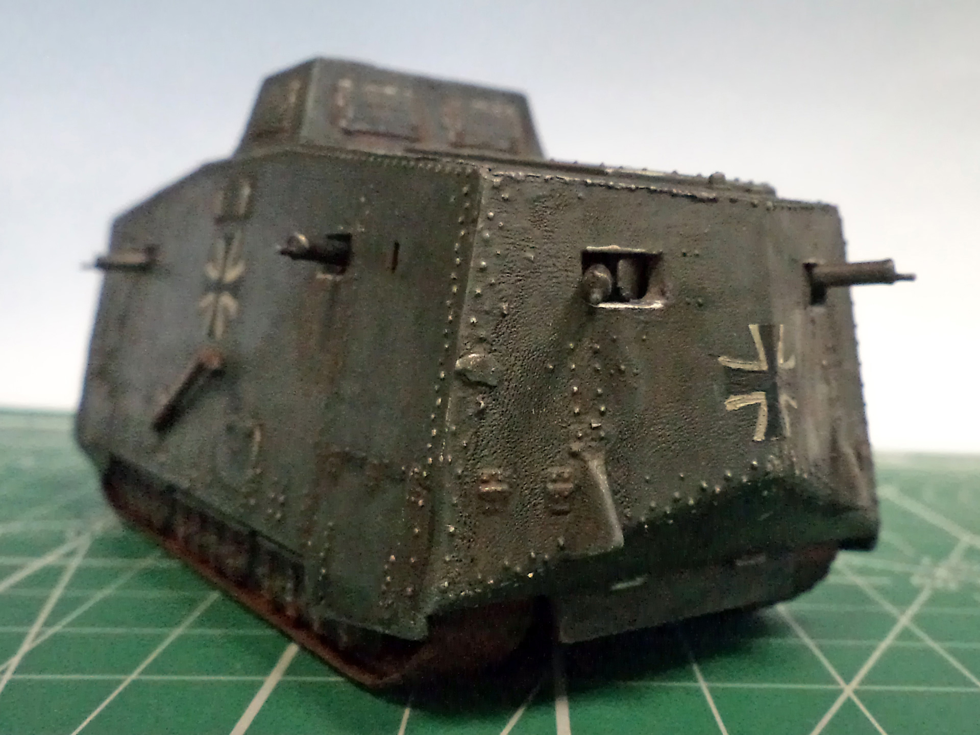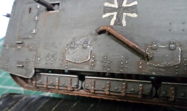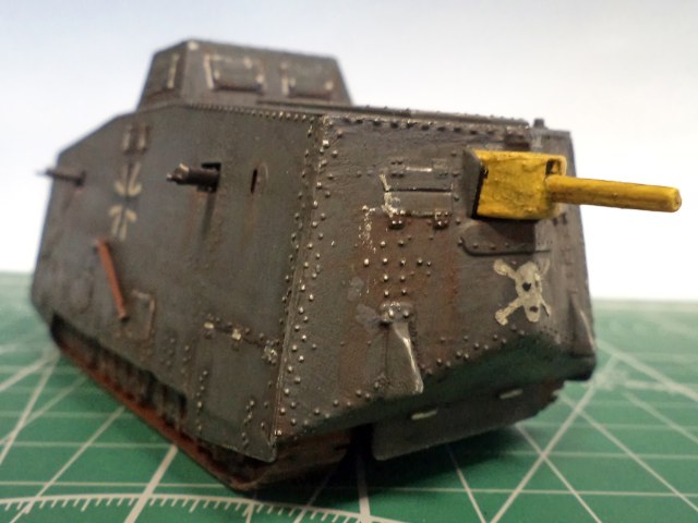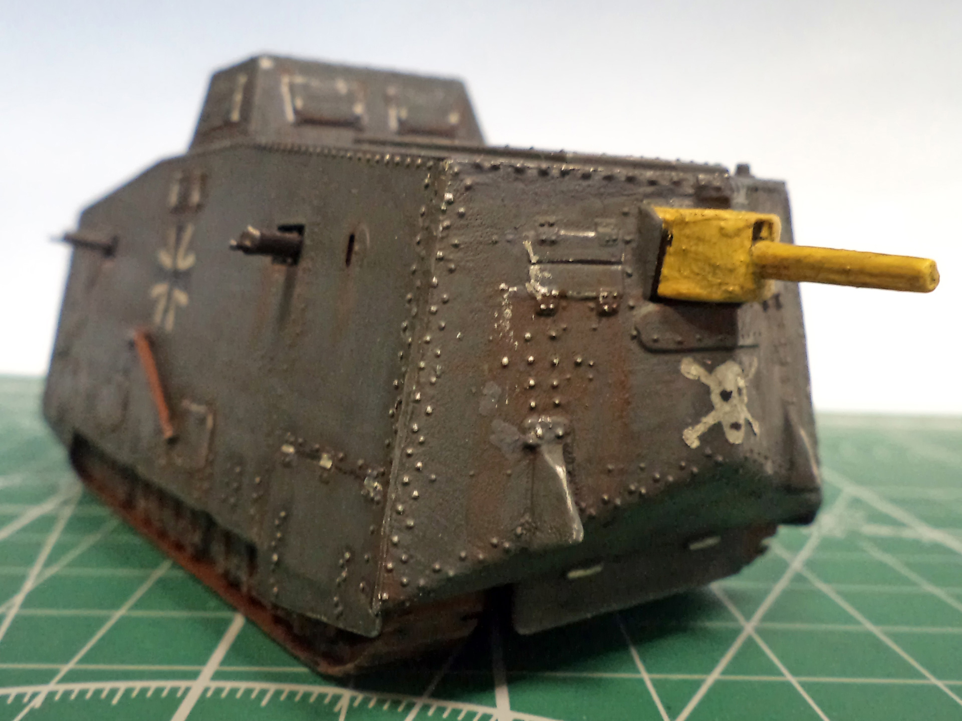 Я не уверен, не помню уже сейчас, но кажется там и правда была большая проблема со стыкуемостью деталей корпуса. Все хочу еще один такой - и собрать заново, уже нормально. Стыки корпуса проработать, амбразуру и щит тумбовой пушки нормально сделать, и задуть из аэрографа, вместо такого заливания краской. Там уж главное будет - клепку не спилить в процессе стыковки корпуса.
