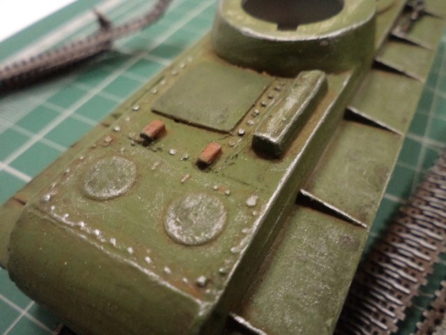 6. Вряд ли реальный СМК имел "оплавленные" грани корпуса. Эпоксилин - это, конечно, хорошо, но в данном случае более эргономичным был бы пластик, или даже отливка смолы в форму. Башни, кстати, моно было и зашлифовать, а также нарастить в местах выемок/неровностей тем же эпоксилином, или шпатлевкой.