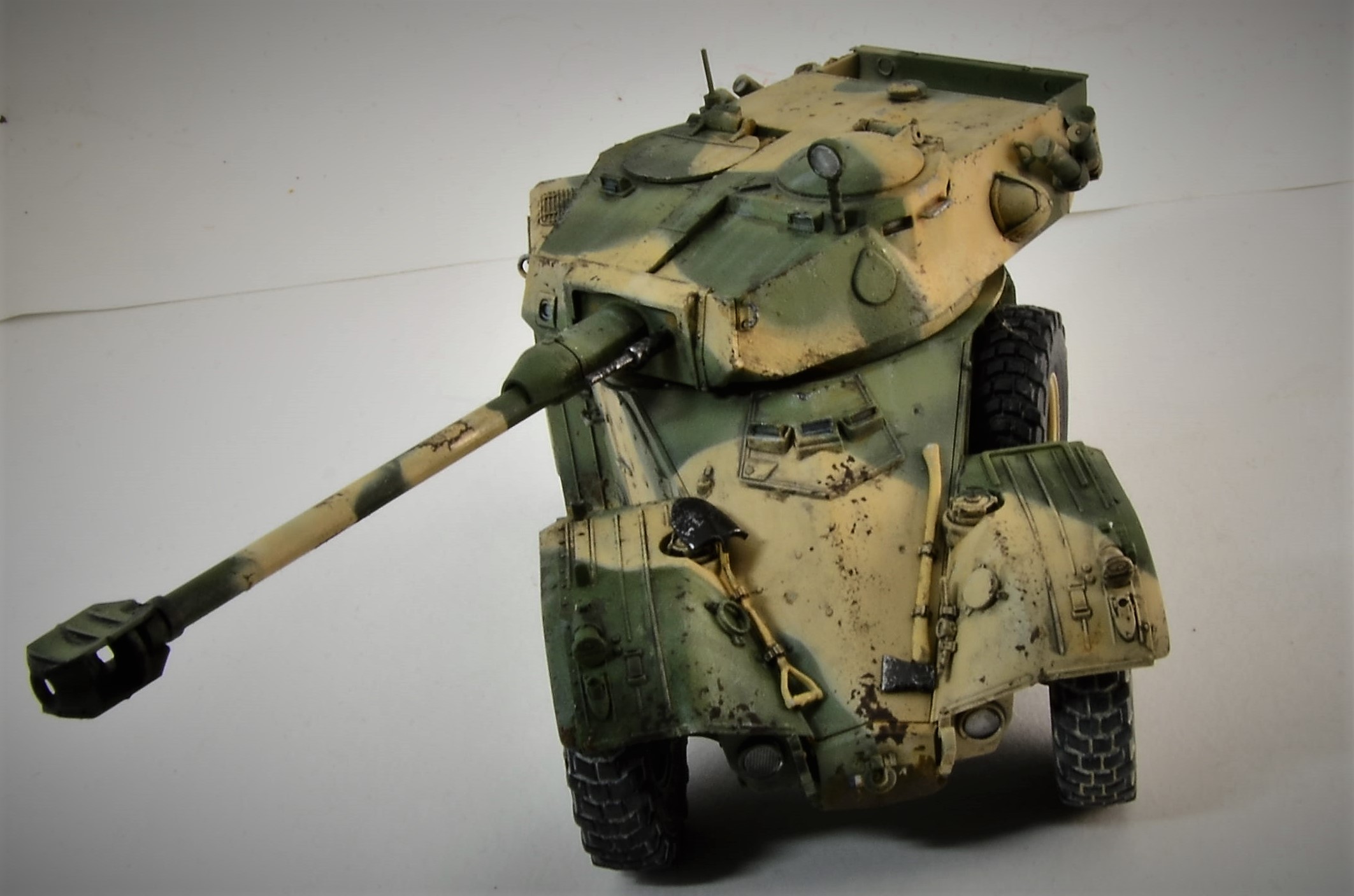Здравствуйте! Хочу представить свою первую модель на этом сайте. Французский развед. автомобиль AML 90 от фирмы Takom. Модель в плане сборки оставила положительные впечатления, единственное, на заднем стыке корпуса Уайт- спирит съел клей.