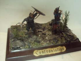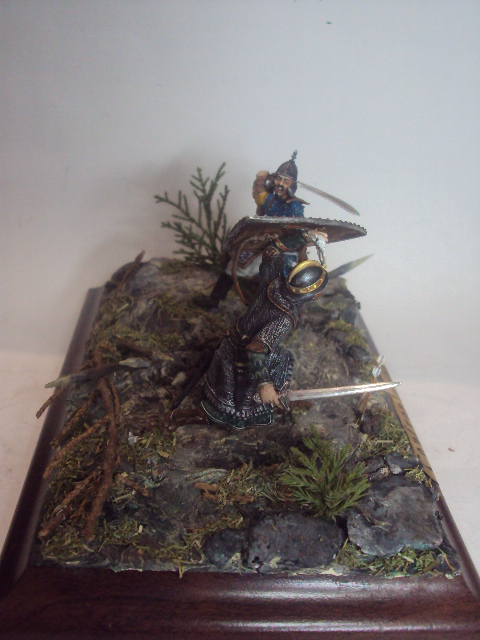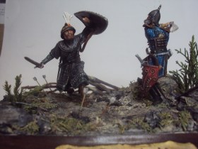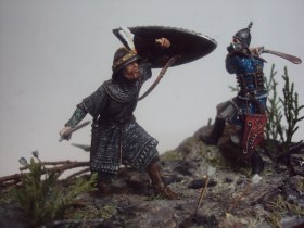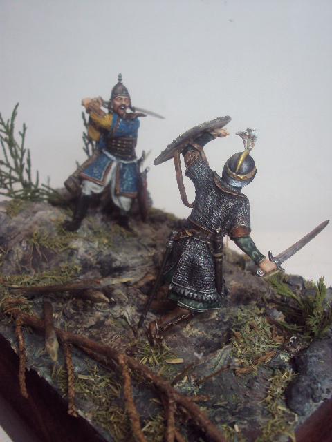 Работа понравилась!!! Свирепые воины, бой до смерти. С фотографий снять бы шумы, ещё больше проявилась б живость поединка. Вы в дальнейших работах старайтесь не обрезать фотки до таких малых размеров, хотя бы 1200 оставить...