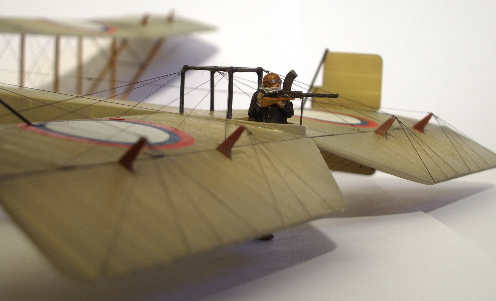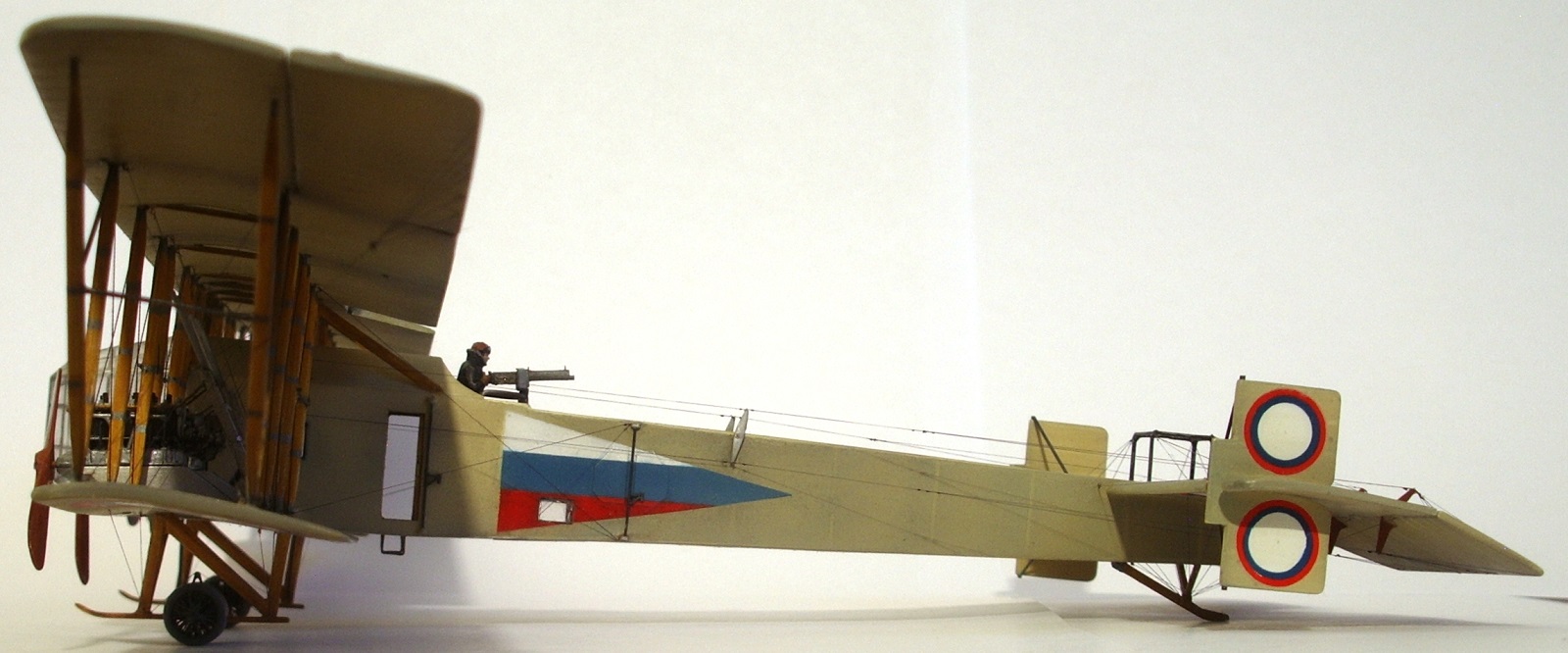 Материалы применял самые разные: нитки, проволока различных диаметров, прозрачный пластик и пр. Стойки из зубочисток. Растяжки продольные крыльевые- нить швейная, другие растяжки и тяги- чулок. Миниатюры подобраны из разных наборов.