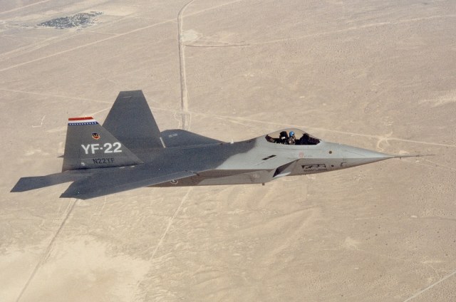 The YF-22 was given the unofficial name "Lightning II" after Lockheed's World War II-era fighter, the P-38 Lightning, which persisted until the mid-1990s when the USAF officially named the aircraft "Raptor"