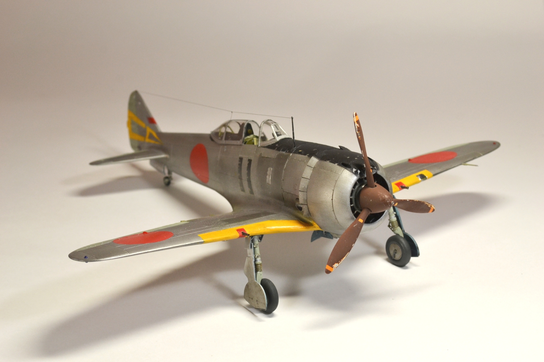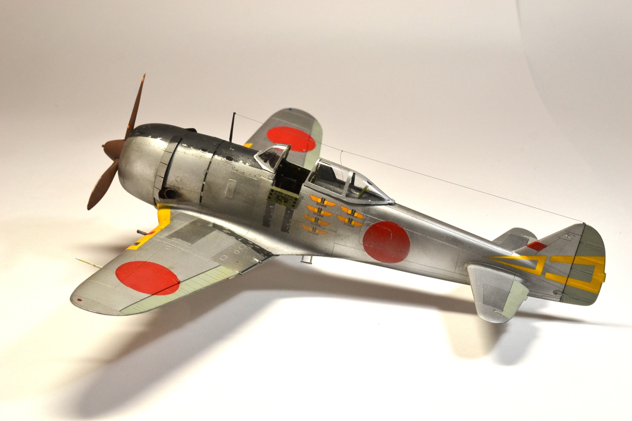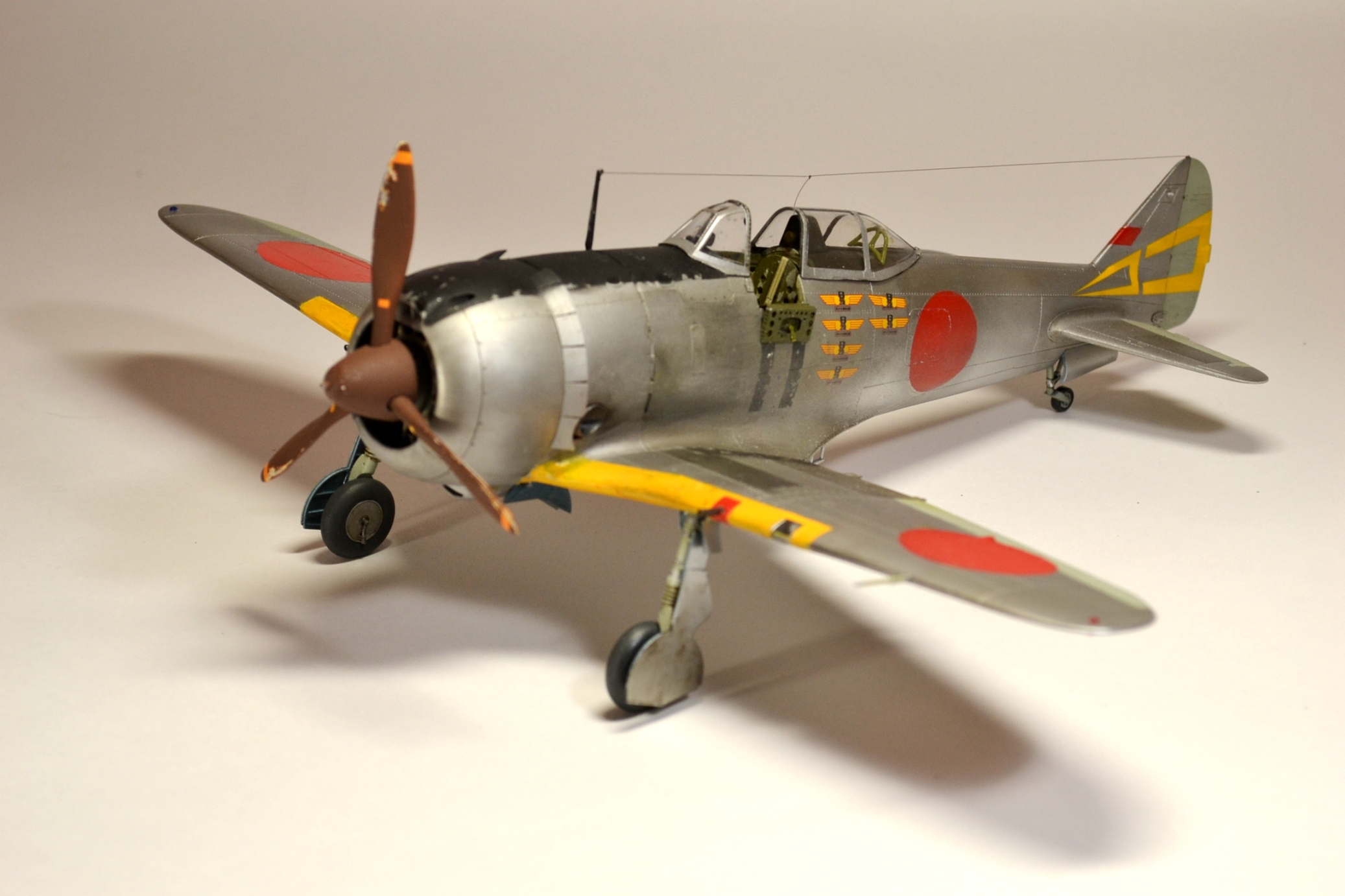 Добрый вечер. Представляю вашему вниманию модель армейского истребителя Nakajima Ki-44HeiSHOKI пилота аса - капитана Йосио Йосида. На этом истребителе Йосида в 1944 году в период обороны Токио от бомбардировок, одержал неоднократные победы, уничтожив 6 самолетов противника типа Боинг B-29 Superfortres, о чем ярко свидетельствуют отметки на левой стороне фюзеляжа. За боевые заслуги Йосида был награжден Bukosho - высшей наградой, присуждаемой в японской императорской армии солдатам, которые продемонстрировали исключительно доблестные действия в бою (и выжили). В постройке модели участвовал набор фототравления от фирмы BIGED, в который входит листок травления для дополнения экстерьера, цветное фототравление для интерьера кабины и маски для остекления. Для покраски использовал акрилы от Акан, Тамия, Валехо. С помощью металликов Ганза попытался впервые сделать панельный эффект. Подробная стройка, кому интересно, здесь Хочу отметить, что постройка модели принесла удовольствие. Все допущенные недочеты отношу к своему небольшому опыту в авиации, тем более что это первая модель в масштабе 1:32.