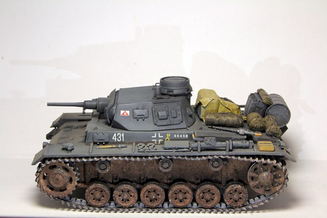 Добрый день. Выставляю свою модель танка PzKpfw III F звезды. Афтермакет: смоляная ходовая от комплектзип, травление от мир моделей, металлический ствол, наборки от академа, скарб от тамии. В матчасть не вдавался, образ собирательный. Окраска тамия, везеринг АК, пигменты.