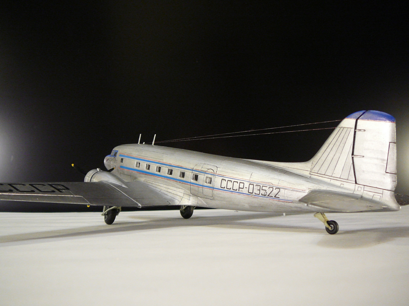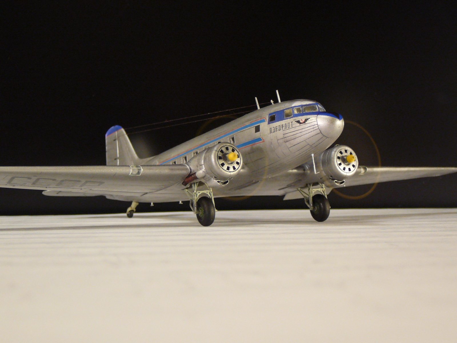 Спасибо за внимательное рассмотрение и замечания. Посмотрел ещё раз многочисленные фотографии Ли-2... Да, согласен с замечаниями. А гидрошланги не сделал сознательно, т.к. совместить их со складывающимися стойками мне не удалось - уж очень тонкая работа. Таким образом, есть пространство для дальнейшего развития.