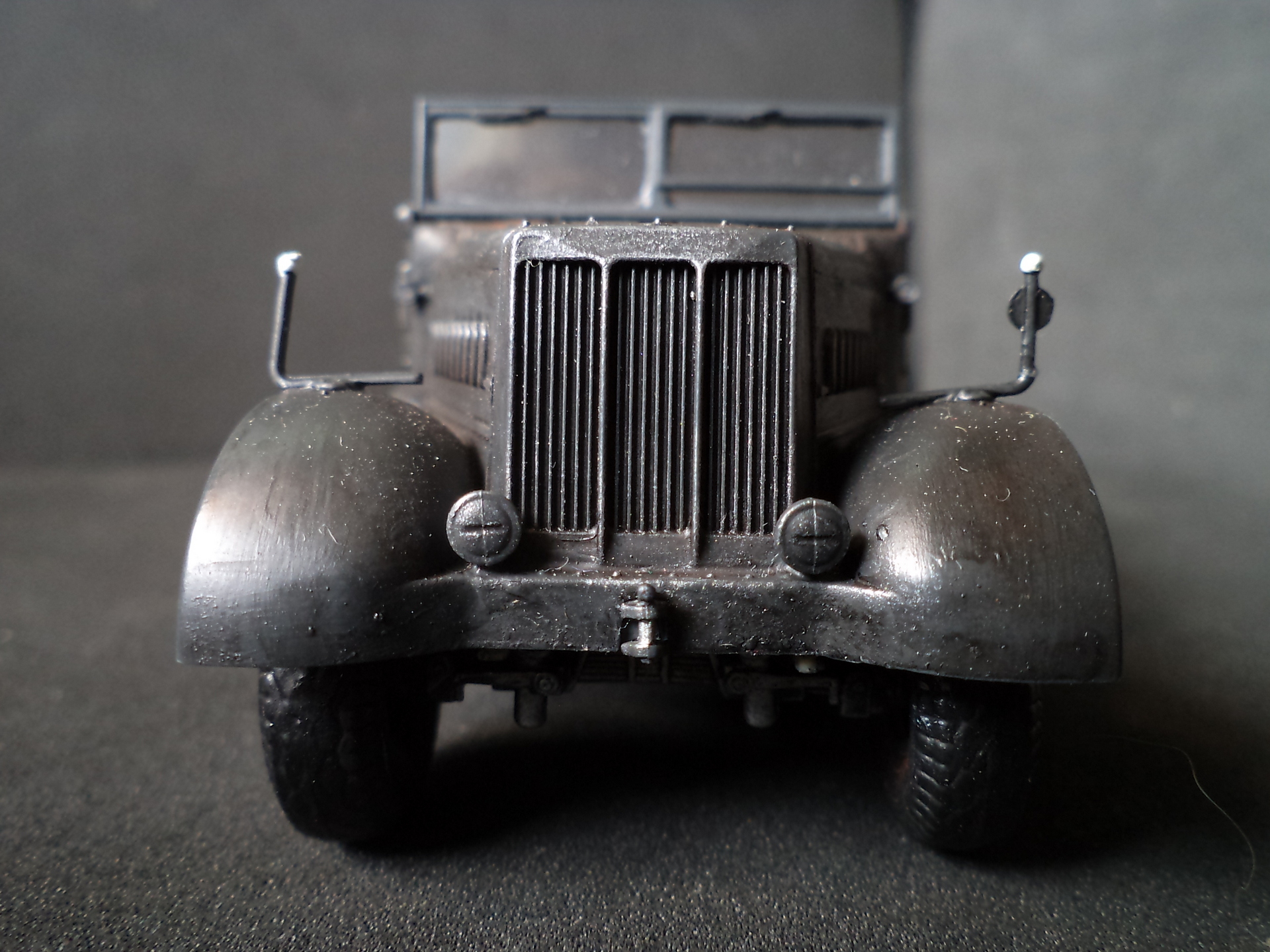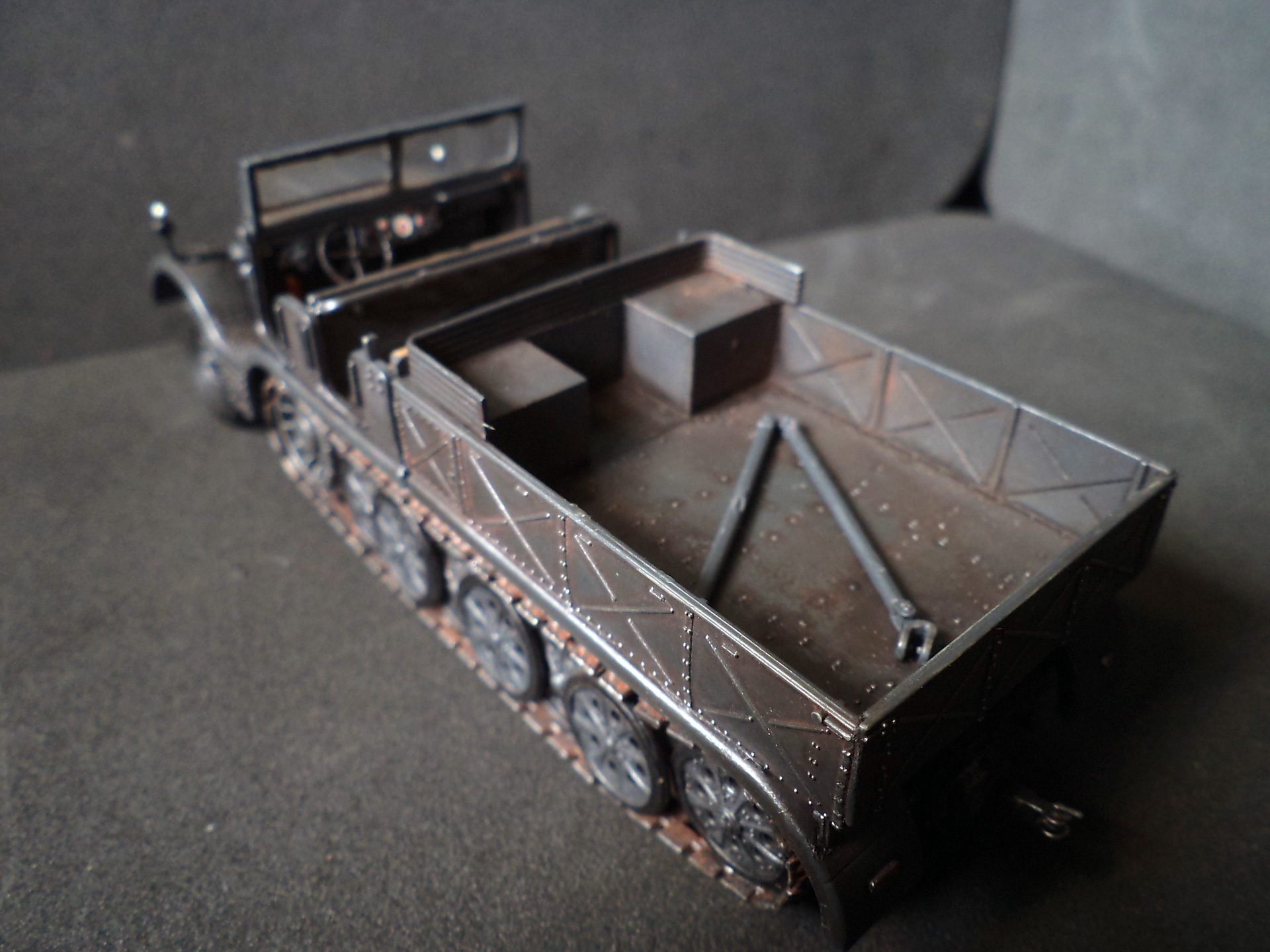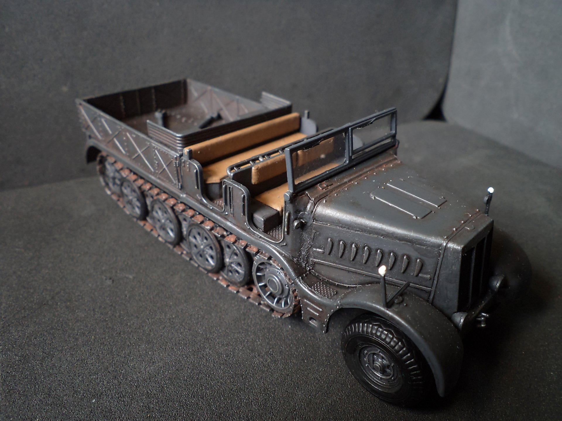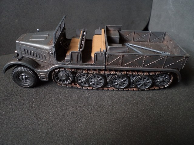 Sd.Kfz.9 — тягач типичного для вермахта полугусеничного типа. Рама лестничного типа. На эту машину ставился 12-цилиндровый двигатель Maybach HL 108 c объёмом 10,838 л. Охлаждение водяное. Двигатель развивал мощность до 270 лошадиных сил. В качестве коробки передач использовалось синхронизирующее устройство ZF G 65 VL 230 с четырьмя передними передачами и одной задней. Для Sd.Kfz.9 устанавливались два топливных бака: один объёмом 90 литров, а второй — 230 л.