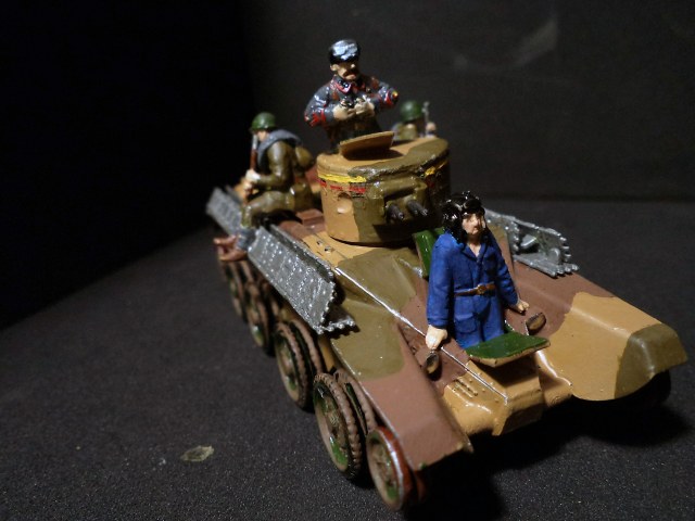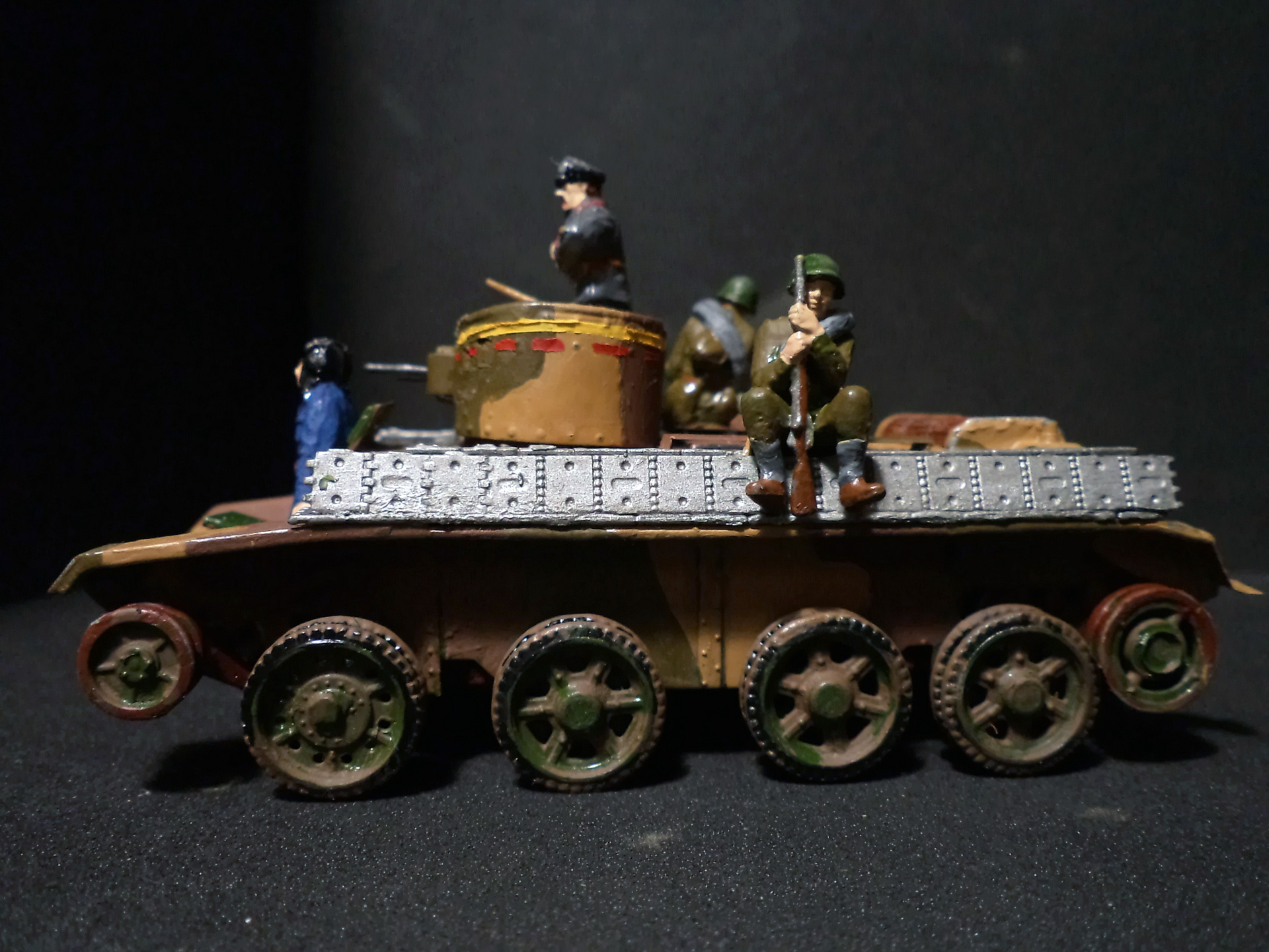 Машина предполагалась на Халхин-гол, поэтому собрана на колесном ходу - со снятыми гусеницами и окрашена в камуфляж, который теоретически вполне мог бы использоваться на пустынном театре военных действий.