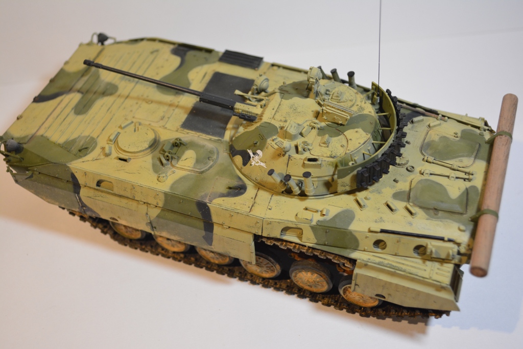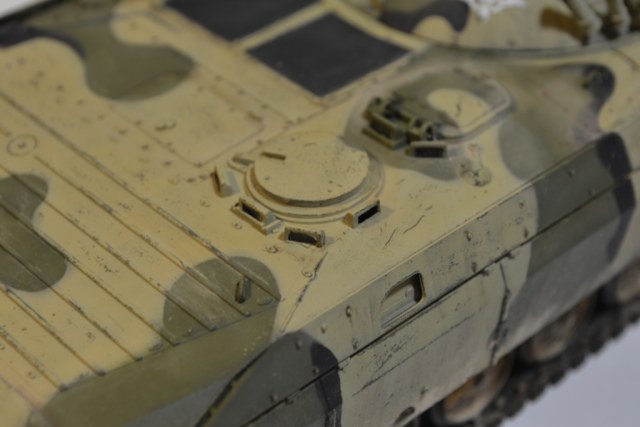 Доброго времени! Данная модель изначально планировалась в качестве кошки для отработки приемов везеринга. Поэтому никаких запилов и соблюдения матчасти здесь не увидите. Сам борт тоже в большей степени собирательный с уклоном под афган. Скажу сразу желания что-то пилить в "звезде" отпало сразу как взял в руки литники - качество и деталировка ужасные, достоверности от прототипов тоже минимальные, ванна и корпус оказались кривыми по геометрии, траки хоть и наборные, но из чего сделаны не понятно - обычным клеем от тамии они не брались, при попытке взять их секундным моментом они просто начали рассыпаться и разваливаться, какое-либо остекление в наборе полностью отсутствует . Вообщем если придерживаться канонов матчасти, то в звезде надо пилит ВСЕ! В итоге собрал аккуратно насколько это получилось.В данной модели опробовал для себя прешейдинг (от него ничего не осталось), модуляцию, сколы, пигменты. Краска тамия, пигменты и смывка аммо миг.