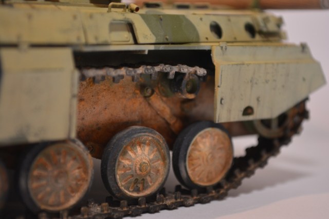 Траки так же окрашены и пройдены смывкой, вопрос - почему вы считаете что на броне траки должны быть убиты в хлам или измазаны? они не используются по назначению вполне могут быть и относительно чистыми.