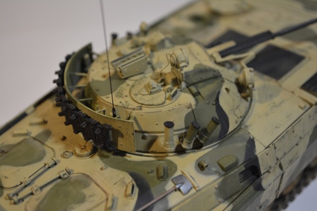 Готов поспорить! Смывка на моделе есть, но так как предполагался афганский вариант, то щели как правило забиваются песком и не обязаны быть черными и выделяться до умопомрачнения. Ствол такой какой дает производитель - все претензии к звезде, металлического уж извините не нашел в местных магазинах. Насчет туч - тут согласен, с ними все плохо