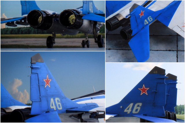 Спасибо, я вообще считаю, что пустые ниши - сразу минус в восприятии, тем более при должном умении они заполняются за день работы. По жабрам - у меня не было выбора, так как пилотов я не сажаю - не умею их красить правдоподобно. Плюс сами жабры на миге очень заметное место - травление их украсило. Врезал мучался долго - там кривая поверхность, сложно в один уровень было все вывести. Очень помогла двухкомпонетная шпаклевка от тамии.
