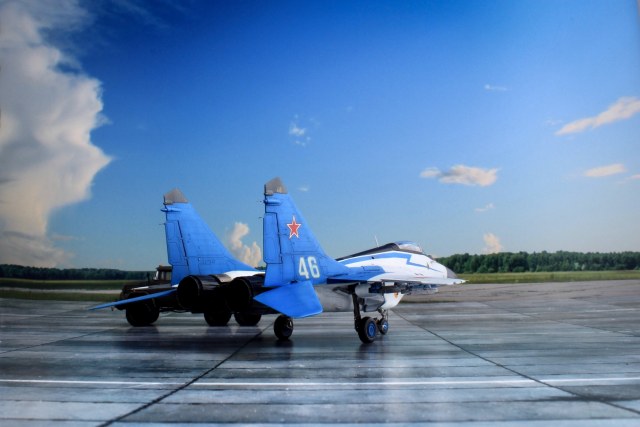 Изначально собирался строить Стрижей в современном окрасе, но перегорел – понял, что не нравится текущая пестрая ливрея. Вспомнил, что ещё в школьные годы, как и Витязей, делал в актуальной тогда сине-белой окраске и решил продолжить традицию делать пилотажников в старом окрасе.