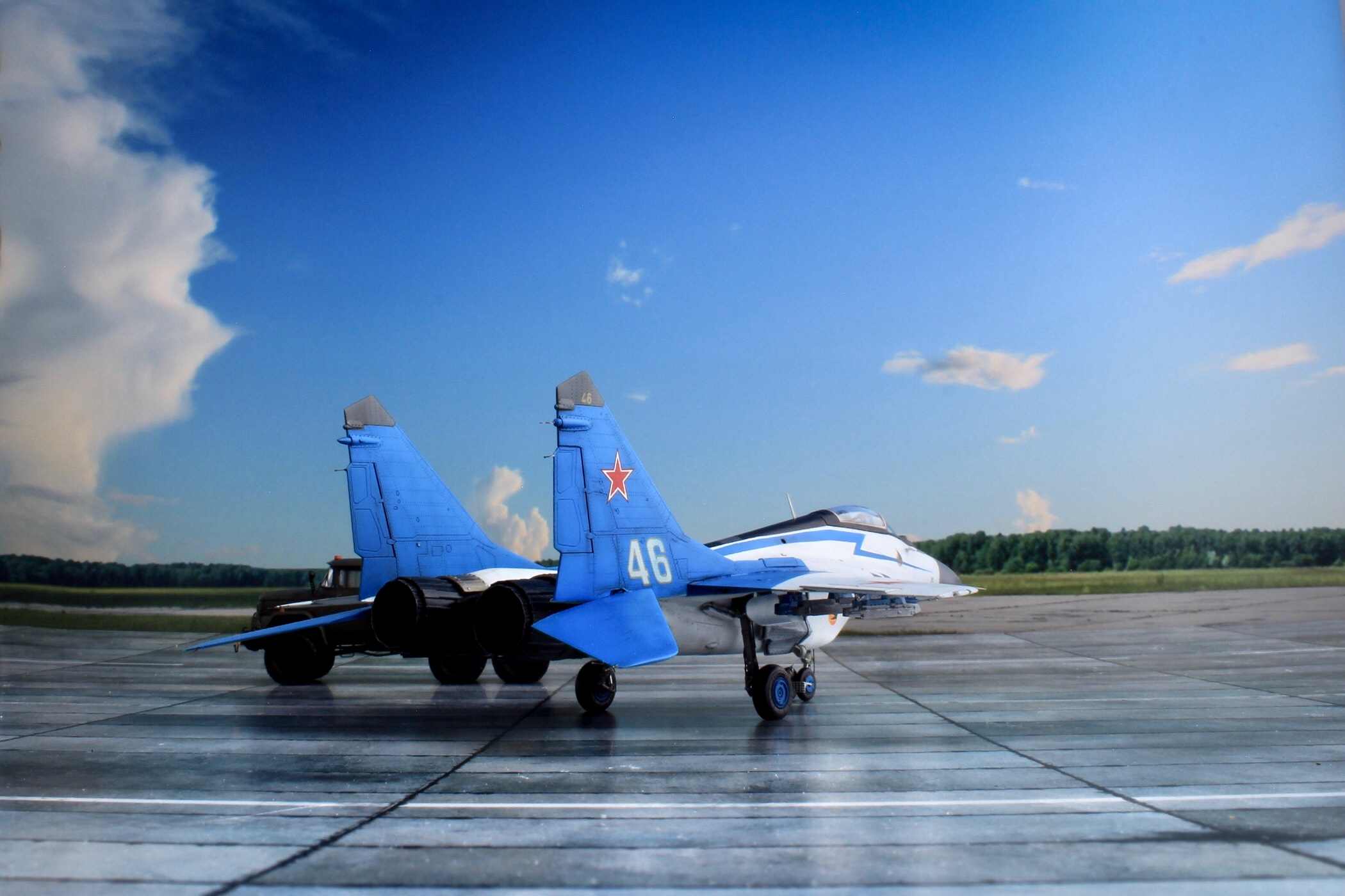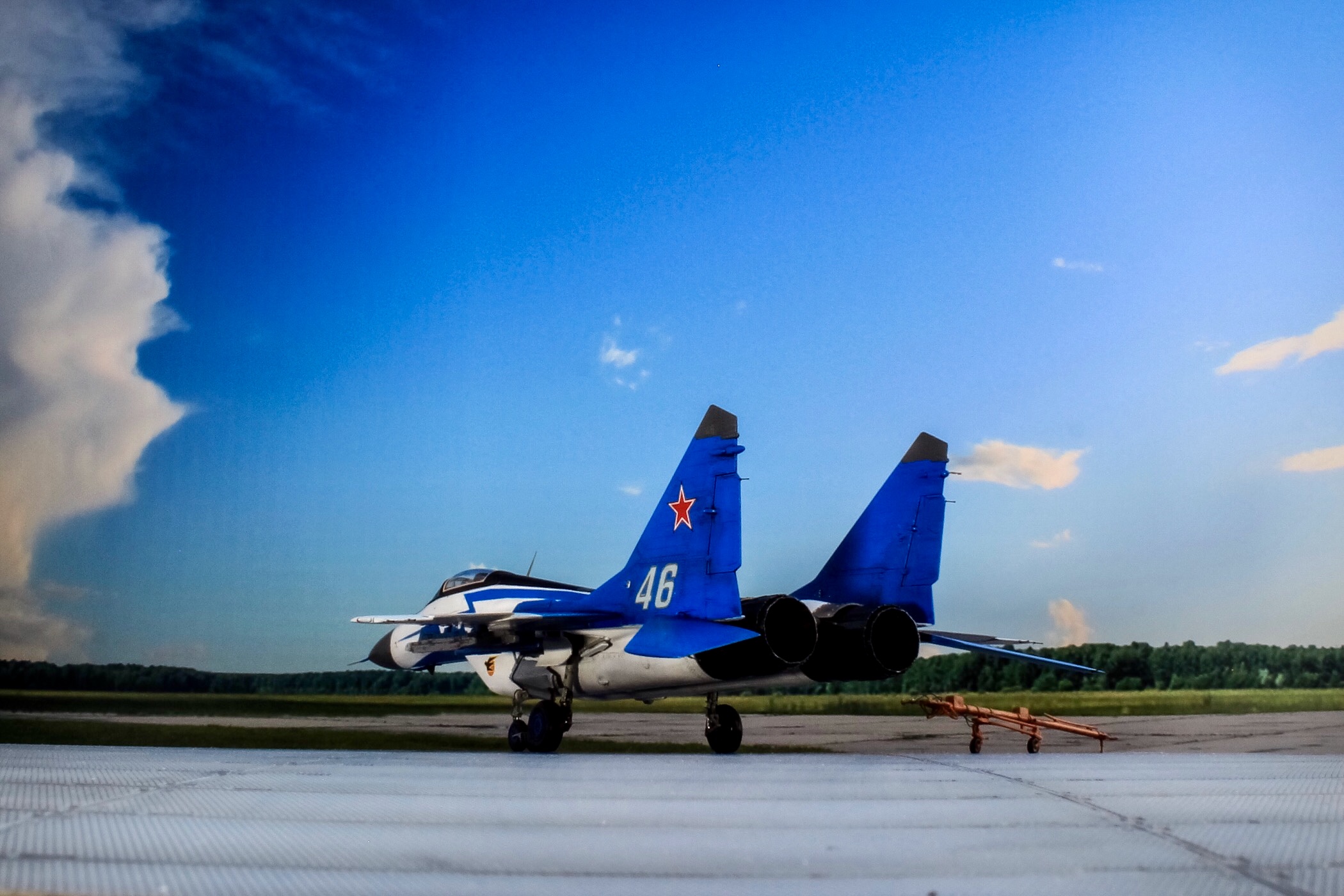 Павел, согласен - но борт-то я делал выцветшим, значит и колеса должны быть не новыми. Хотя могли поменять наверное - не знаю как часто резину на самолете меняют. Во времена Стрижей я думаю на этом сильно экономили и до корда катали, разруха была в армии.