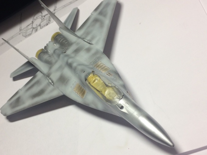 С декалями получилось интересно - так как актуальных деталей и наборов с такой окраской нет, удалось выцепить на Ебэй набор Хасегава 90-гг. Какое же мое было удивление когда я понял, что декали не только не рассохлись, но и легли лучше многих современных. Единственное обрезал их по контуру - показались толстоваты. Пилоны и Кое- какие элементы взял из дек Бегемота, значок миг пришлось подкрашивать маркером.