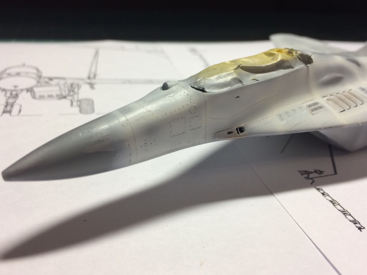 Коллеги, я знаю, что в общем ВЗ на стоянке должны быть открыты, но уж очень это место в травлении нравилось, ажурненько так сделано. Поэтому специально искал фото на стоянке с закрытыми загулшками и нашел - значит так бывает. Ну и где-то вычитал, что технически при долгой стоянке их техники могут поднять - что бы всякое г... не залетало. В общем решил, что так в принципе может быть - значит можно сделать на модели, если не прав -поправьте, это не последний 29 который я делаю )