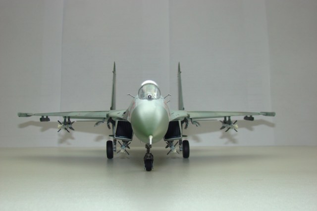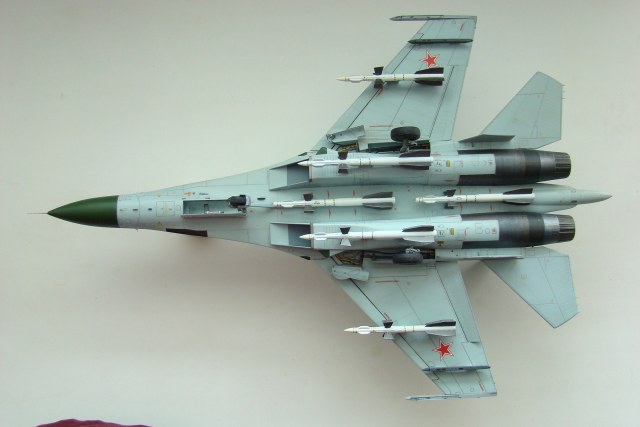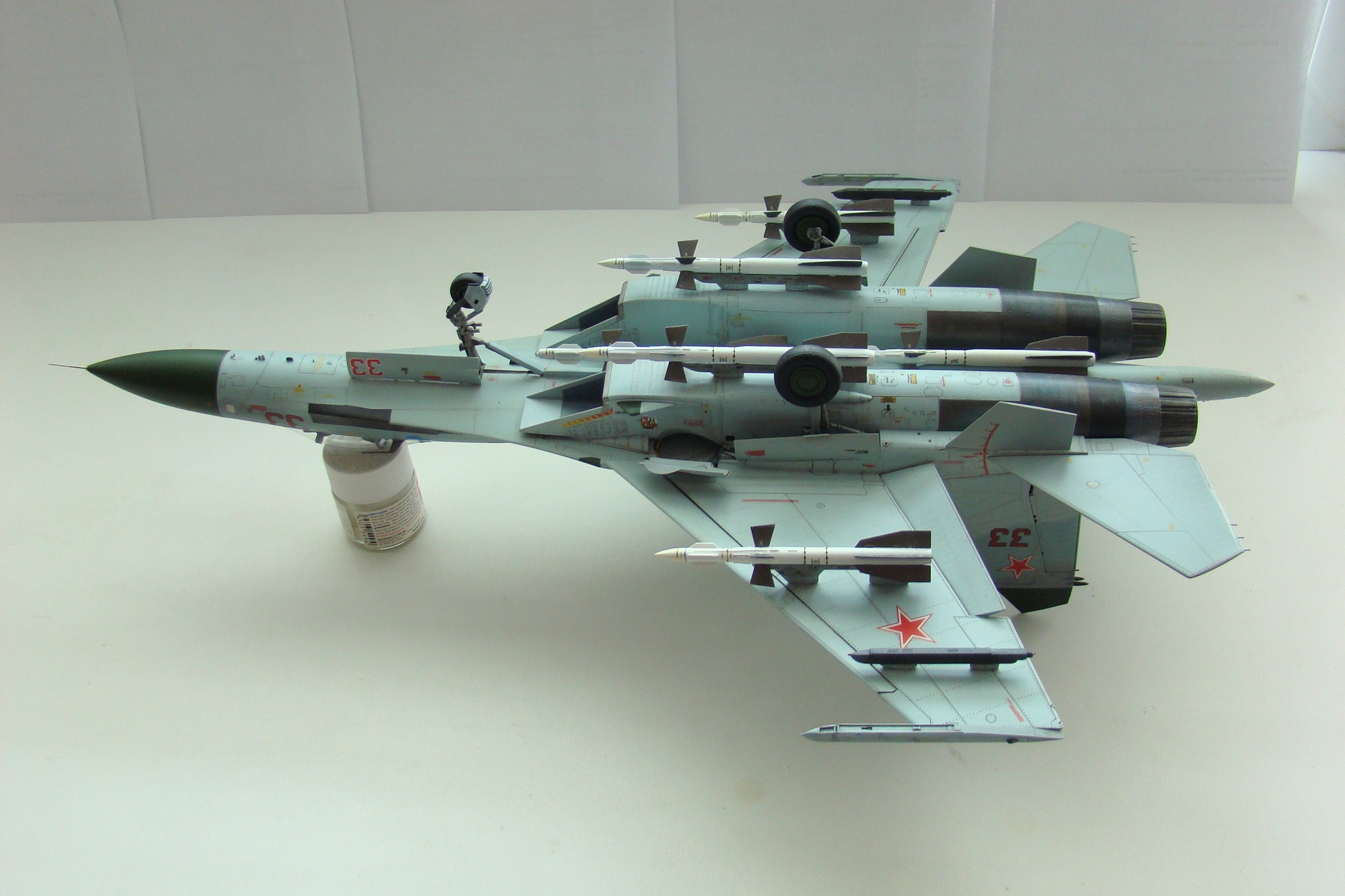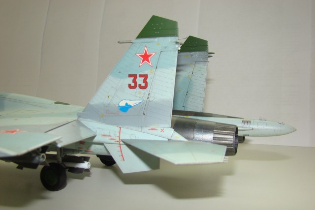 В целом - очень хорошо, но есть упущения. Р-27эт не на своем месте висят, противофлаттерные грузы зря в металлик покрасили. Зря без привязки к прототипу сделали, китайцы знаменитую машину предложили.