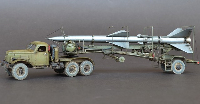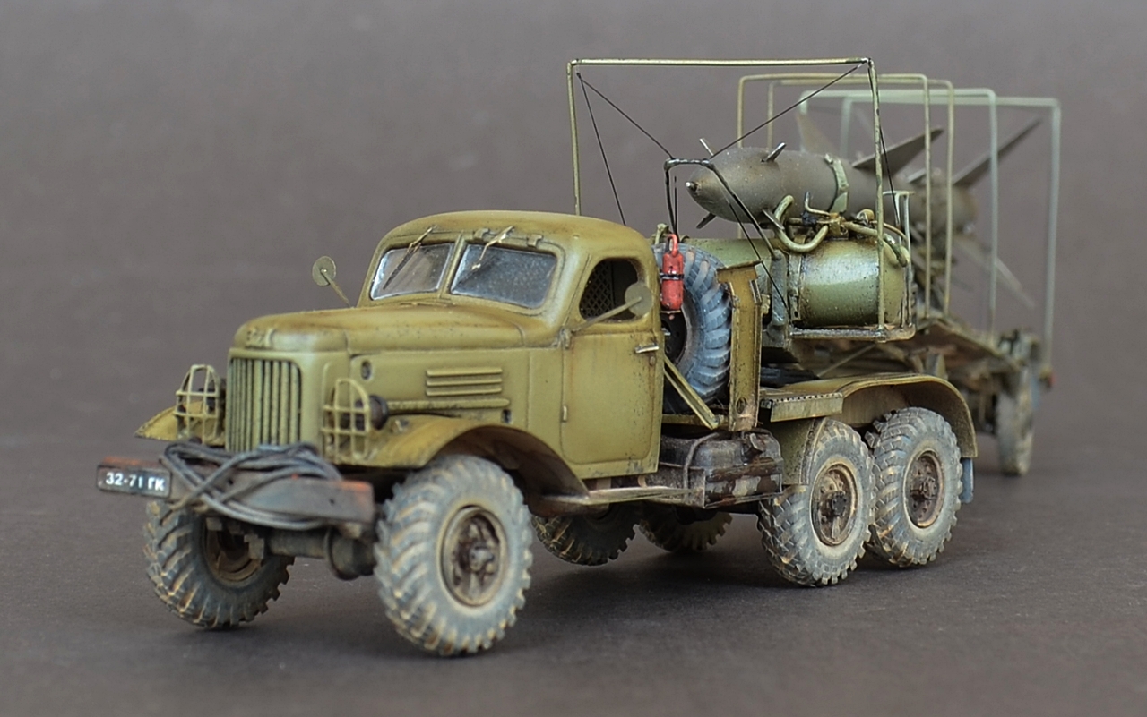 Очень красивая работа!По ракетной установке матчасти не знаю,но мне кажется достаточно детализированная,смотритя здорово!По Зилу есть некоторые, наверное незначительные замечания.Бросается в глаза нестандартное сопряжение крыло-ступенька,из за этого радиус крыла не совсем верный.Защитные решетки желательно сдвинуть подальше от края крыла.Ну а в целом работа смотрится очень живо!Очень понравился ДЗК и колеса!