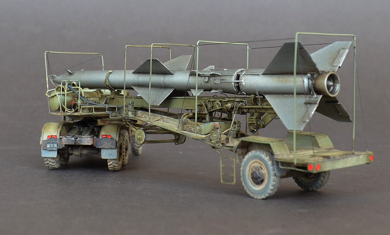Шикарная модель,особенно для 72 масштаба.И как это -не на что ровнятся? Вы ведь в 2015 выкладывали такую же машинку - только в 35.!! Видать к кому-то уехала- если бы рядом стояла ,нынешняя малышка вообще без ошибок бы получилась!!! Ведь ЗиЛ-157 имели стоп-сигналы круглые,такой же стоп-сигнал должен стоять и на ПР.Кроме,того на заднем бампере ПР должен стоять и фонарь поворота, а боковые катафоты на ПРке были желтого цвета.По ракете:на этих ракетах(11Д,13Д всех мод.) Трубка ПВД не торчала из носа,кроме того в носовой части были антенны радиовзрывателя желтого цвета(8 полосочек из деки на 35 масшт)На большой модели рули-элероны у Вас зафиксированы стопорами,которые прижаты прямо к корпусу ракеты, а на этой Вы стопора зачем-то приклеили к середине(как тягу).И только 2 стабилизатора на ПРД имеют элероны - а Вы на все сделали.Но не сделали жгут на ПРД к стабилизатору.Думаю , эта инфа будет полезна тем, кто решится вслед за Вами собрать такую же модель!!!!