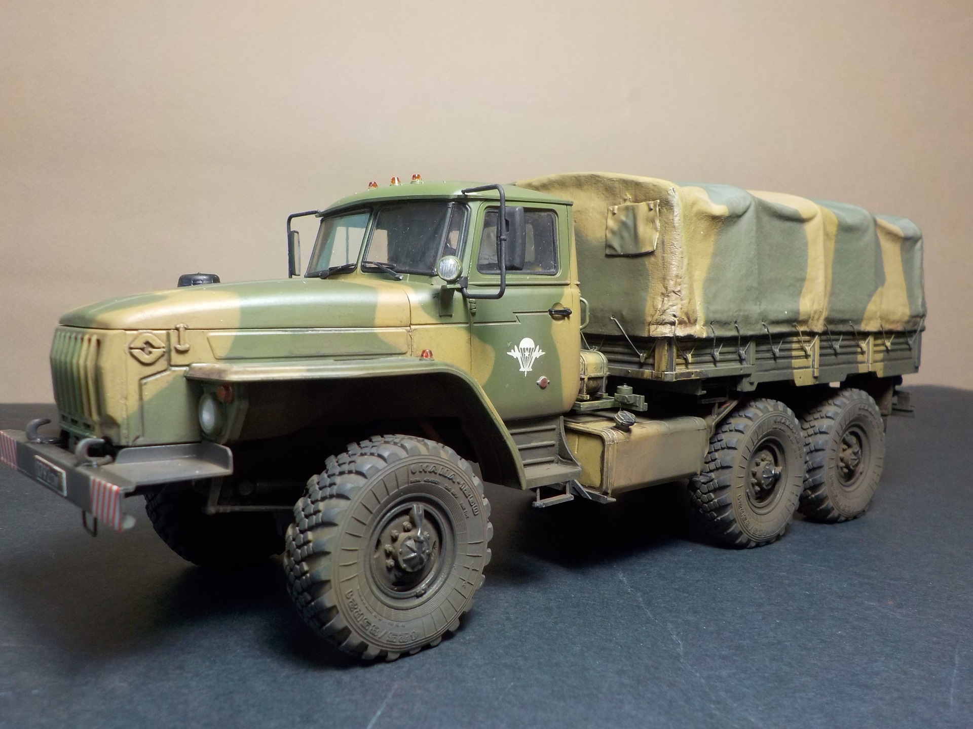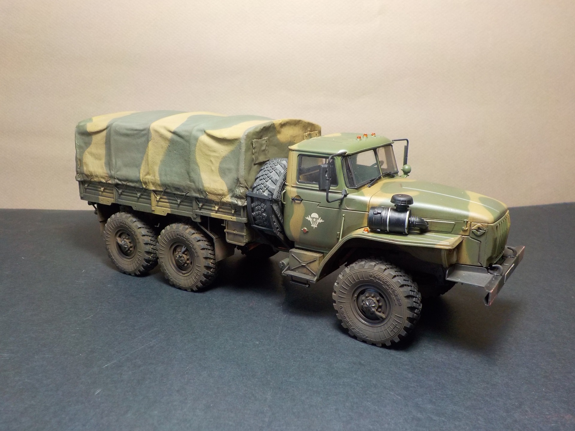 В целом неплохой набор.Из минусов это колёса и отсутствует декаль на панель приборов.Колёса заменил на MINIARM,тент изготовил сам.