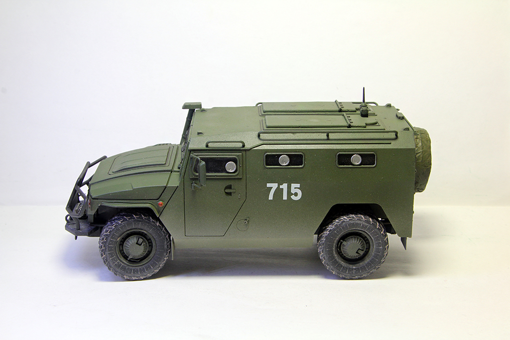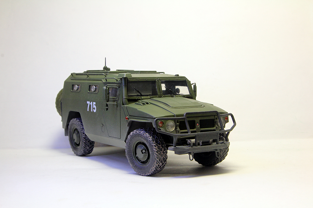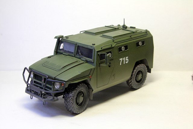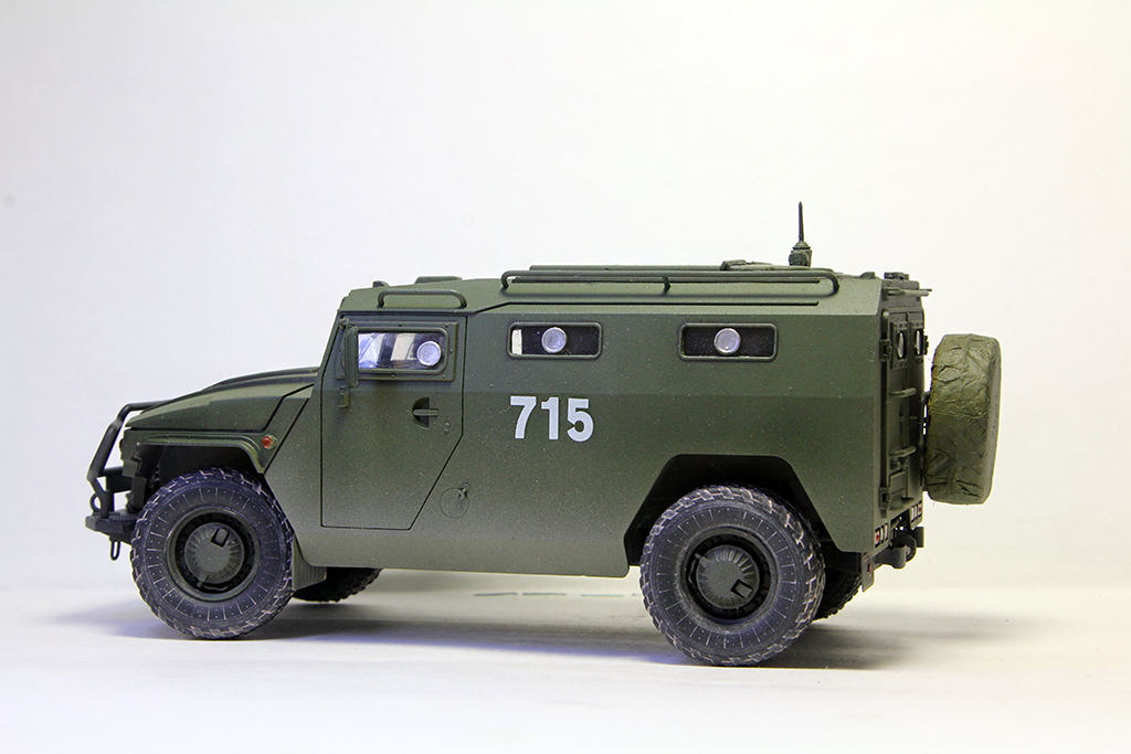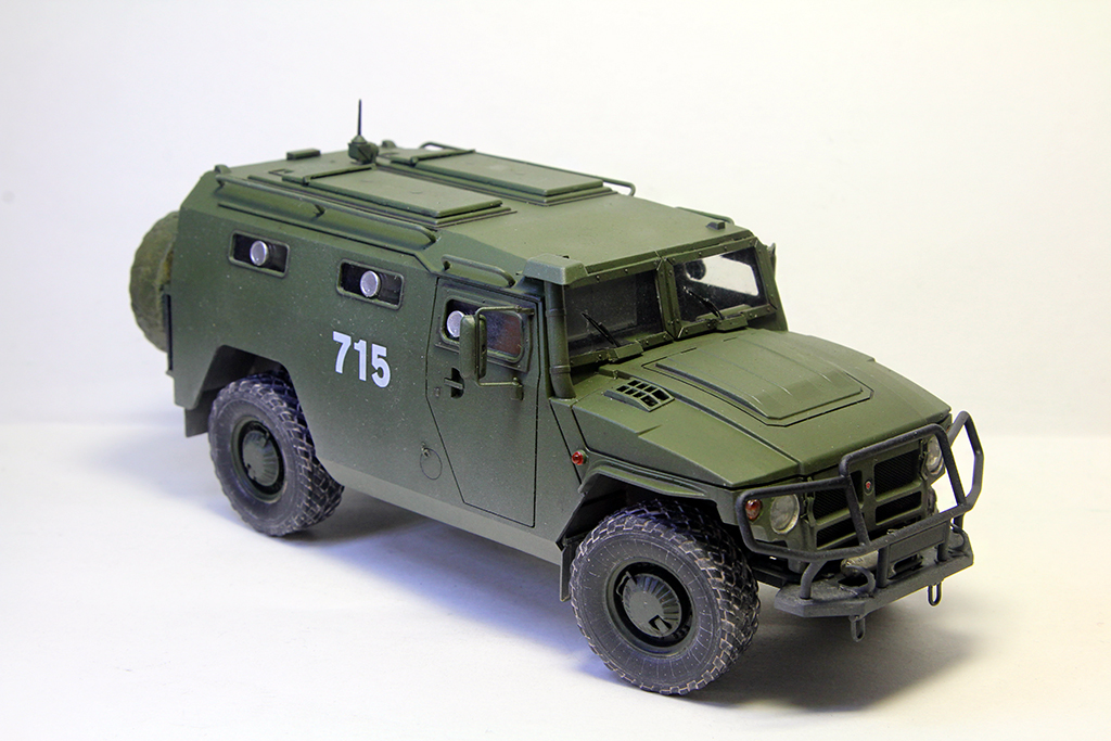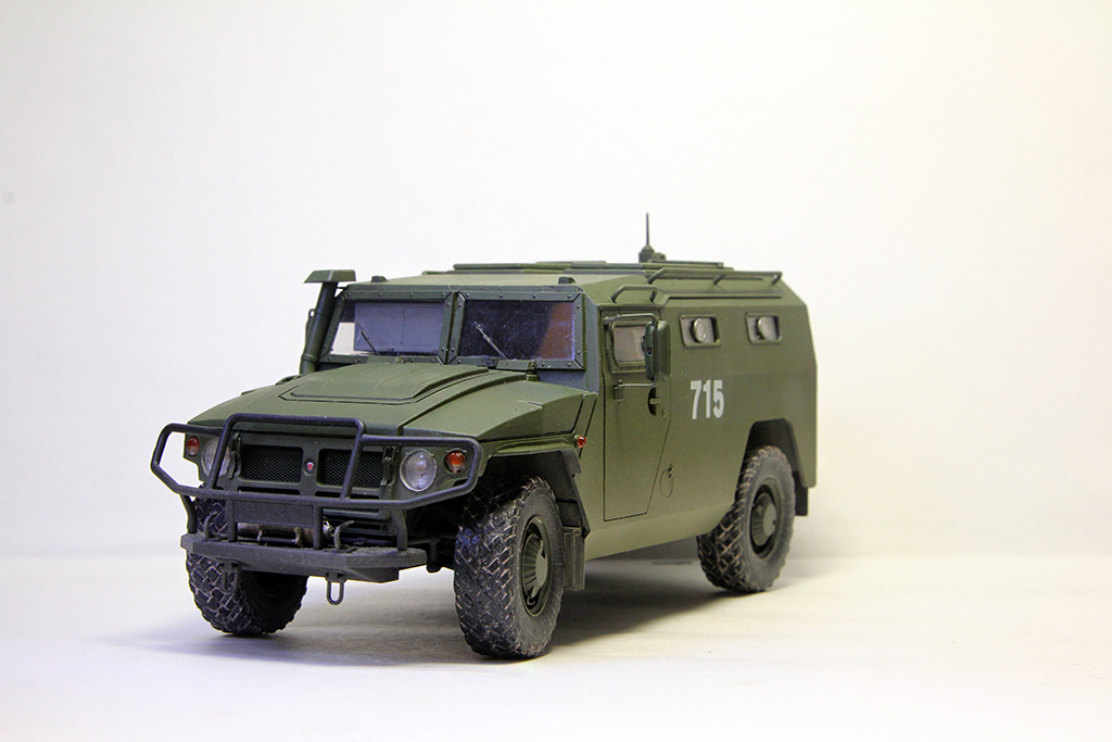 Представляю вам своё видение этого бронеавтомобиля. Модель от звезды очень удивила, никаких утяжин, облоя, всё почти идеально стыкуется. В этот раз звезда молодец. Применял набор травления от микродизайна. В салоне долго окрашивал приборку, хотя в итоге всё равно ничего не видно. Посмотрев на модель после полной сборки, решил делать её в походном положении. Окраска производилась акрилом от пацифик88 и тамии. Везеринг пастелью, пыль - бафф от тамии.