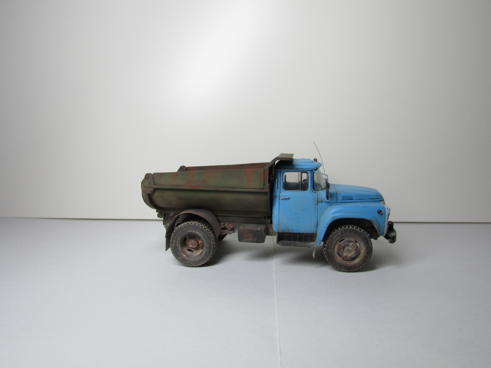 Всем привет , закончил ММЗ 555, по причине отсутствия в продаже Кита был куплен донор от автоленд и бортовой от AVD , собственно от автолегенд только рама и кузов , итак что было доработано : оптика от Эльфа , габариты / поворотники самодел , задние крылья листовая медь, брызговики из фольги , нарастил борта из листового пластика , огни автопоезда , крепления зеркал , поручни на кабине - проволока , "приколхозил" антенну и ящик под инструменты , окраска Mr. hobby, Тамия , тонировка пигменты Миг , смывка масло на уайт спирите