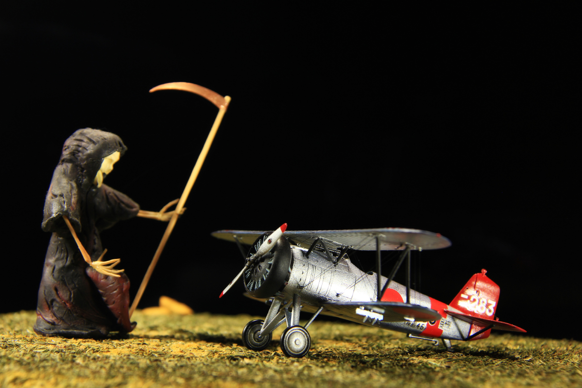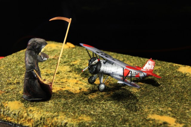 Красивый бипланчик. Насчет серебрянки уже сказали выше. Насчет "дамы с косой" - ну так у них там "самурай жив тем, что готов к смерти". Впрочем, японская смерть - она, кажется, без косы.