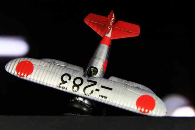 А сам по себе самолетик смотрится здорово! На черном фоне - неожиданно симпатично! Разве что блики от ламп картинку портят. Думаю, что такой эффект зернистости это от искусственного освещения, думаю при естественном свете не так сильно заметно. Евгений, уберите Вы этого Сумеречного жнеца, и добавьте несколько фото при дневном свете, без вспышки, на однотонном фоне. Что ни будь такое деревянно-бамбуковое, по мотивам палубы. :-)