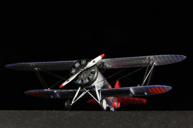 В относительно большой коробке от FineMolds лежали 2 небольших литника, совсем маленький пакетик с металлическим винтом, сиденьем пилота и пулеметом. Все это модно было бы уместить в коробку в 4 раза меньше. Качество модели для этой фирмы посредственное. Сдвиг пресс-форм для такой малютки (70x110мм) весьма ощутим – до 0.5мм, расшивка очень неглубокая и разная по глубине. При подгонке частей фюзеляжа уходит в ноль. Приходилось делать ее заново. К крыльям и имитации провиса полотна особых замечаний не было. Декали толстые. Набор оставил двоякое чувство. С одной стороны в итоге вышла приятная модель, с другой – она не стоит своих денег. Добавил из старых запасов немного фототравления в кабину и бомбодержатели.