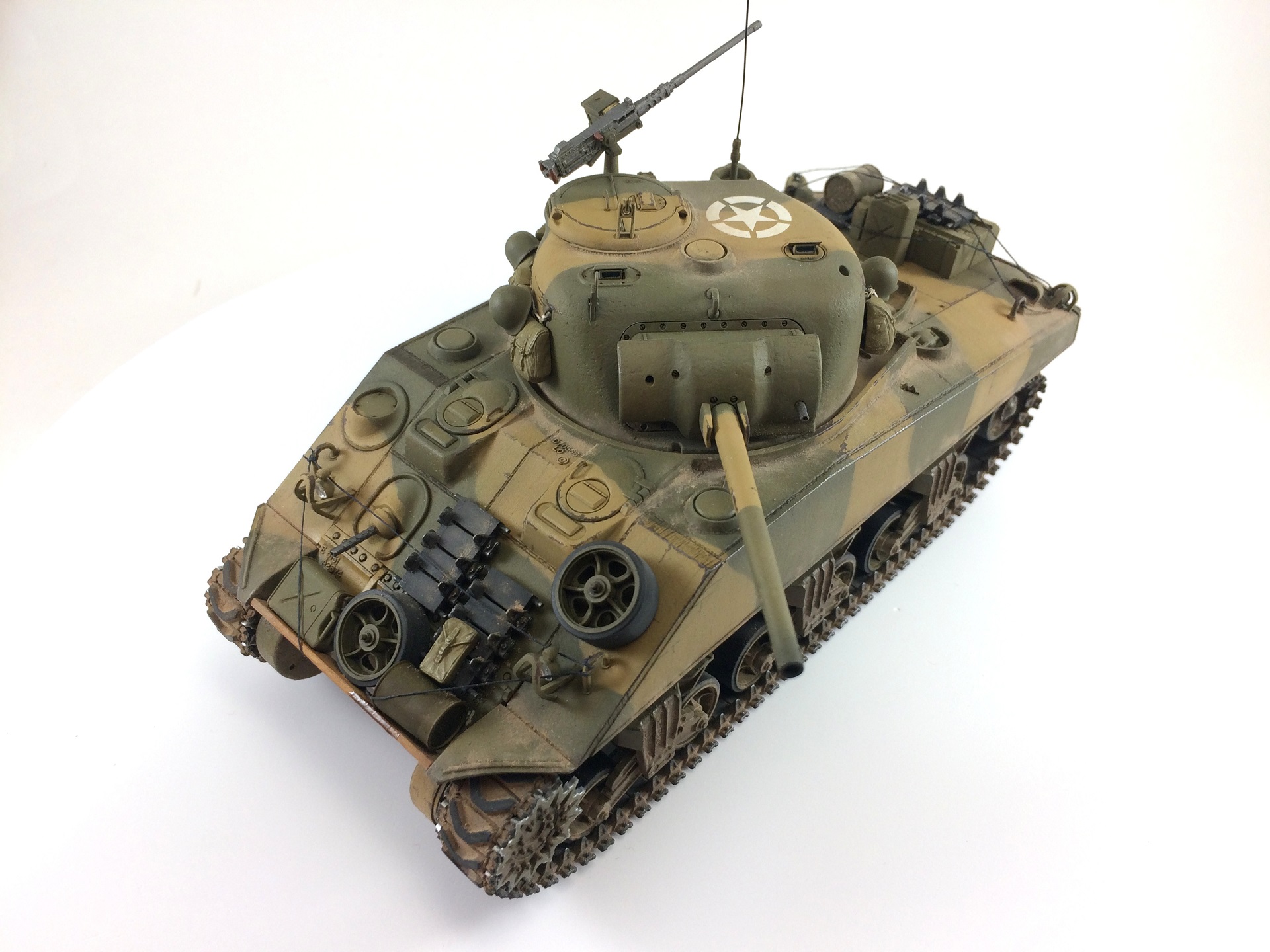 Добрый вечер. Коллеги, хочу показать вам свою крайнюю работу.Модель танка Шерман от фирмы Tamiya,полностью собрана из коробки.Поменял ручки и фары,ну и так доработки по мелочи.Хотел просто взять и собрать Шерман без заморочек и матчасти)))