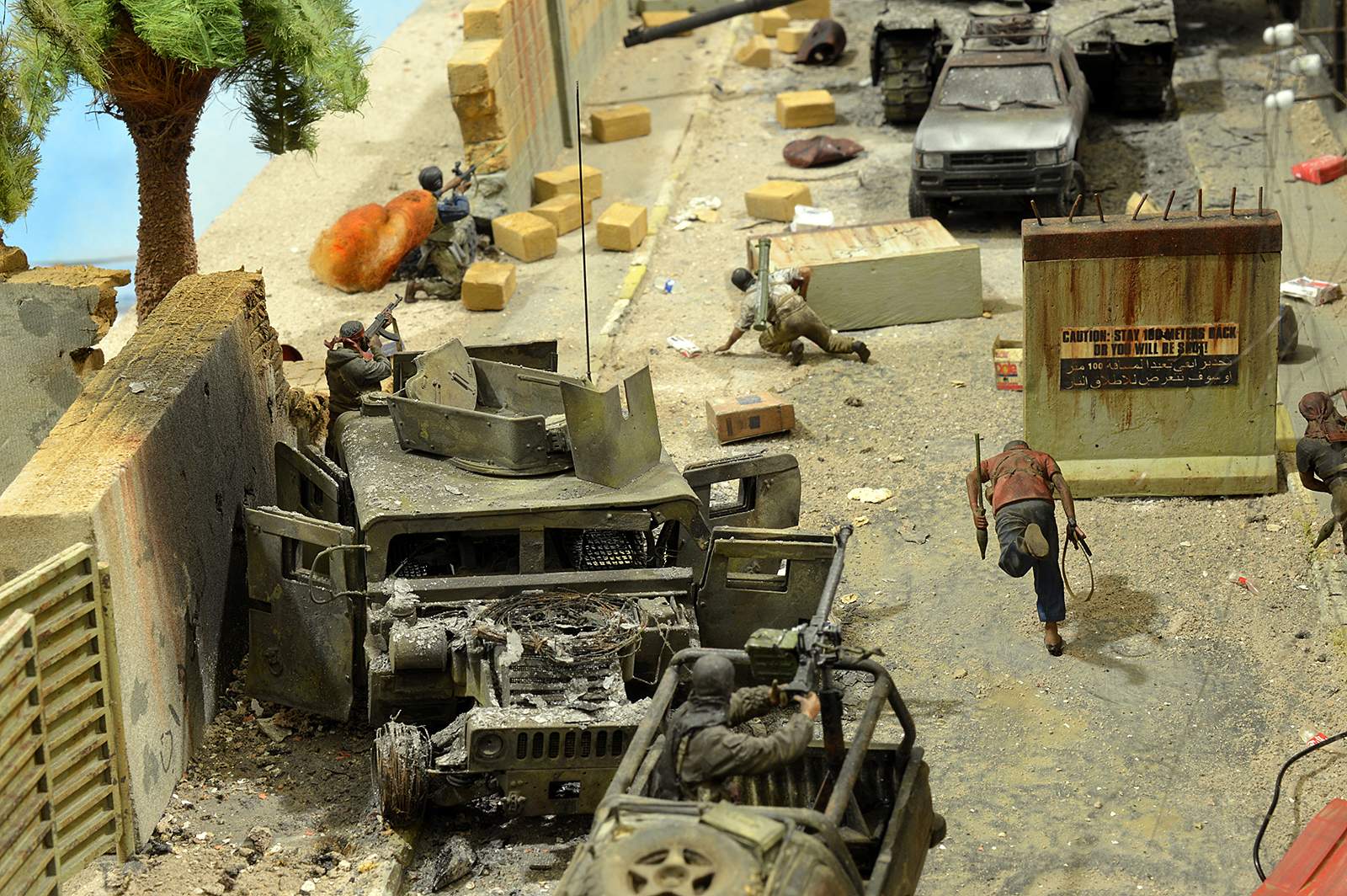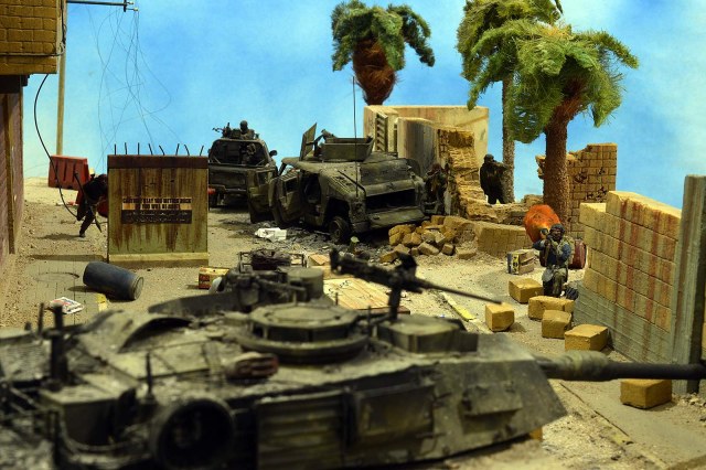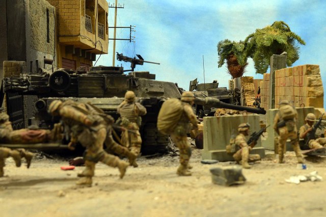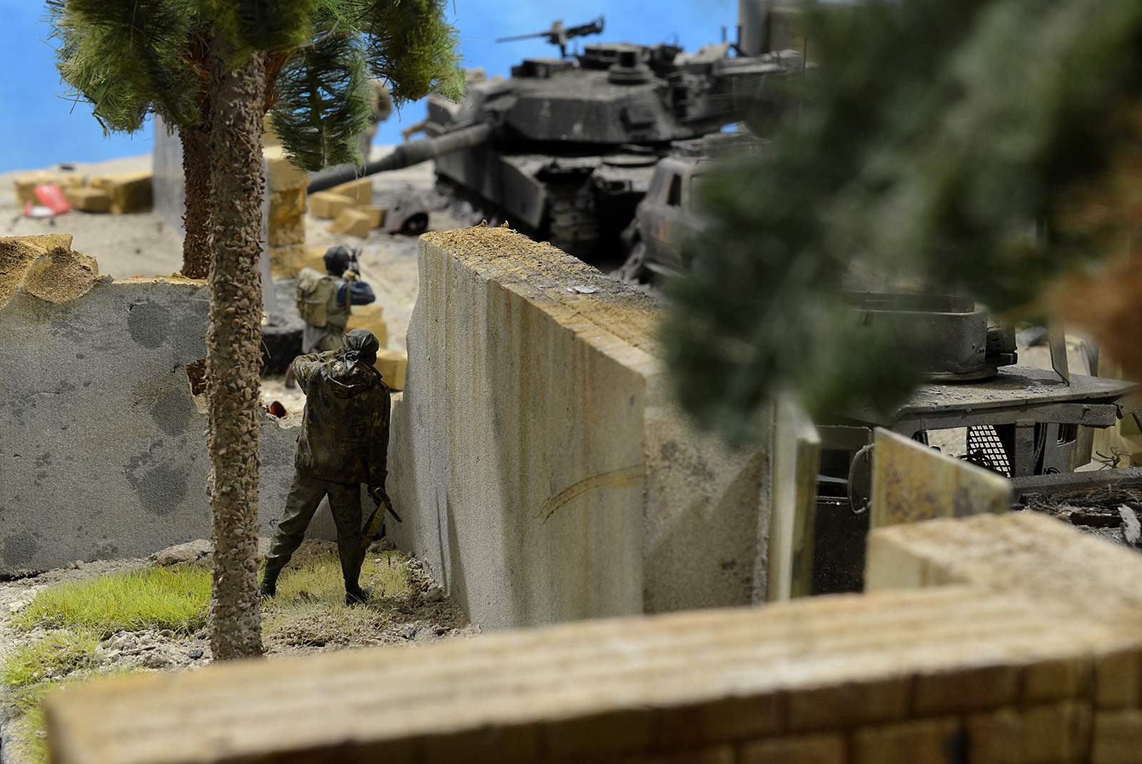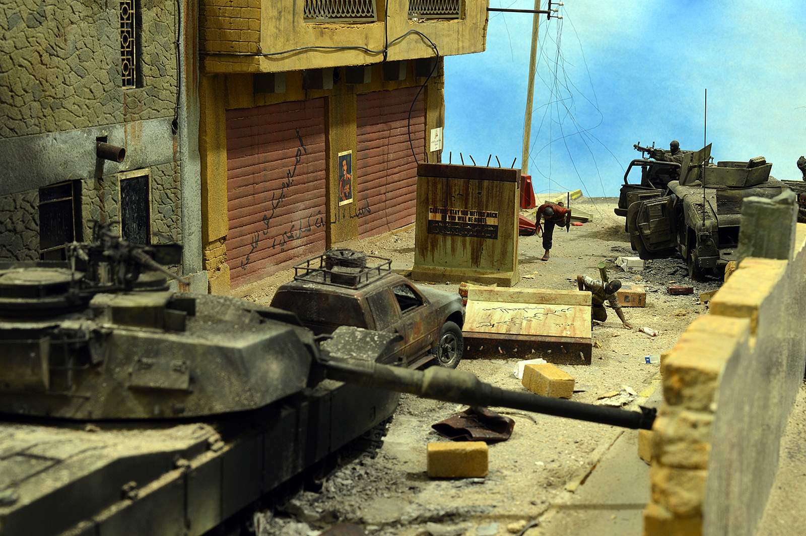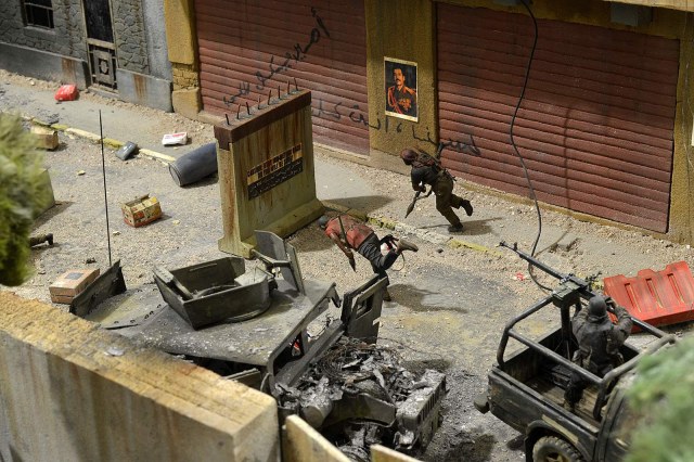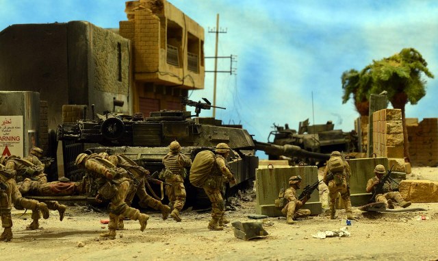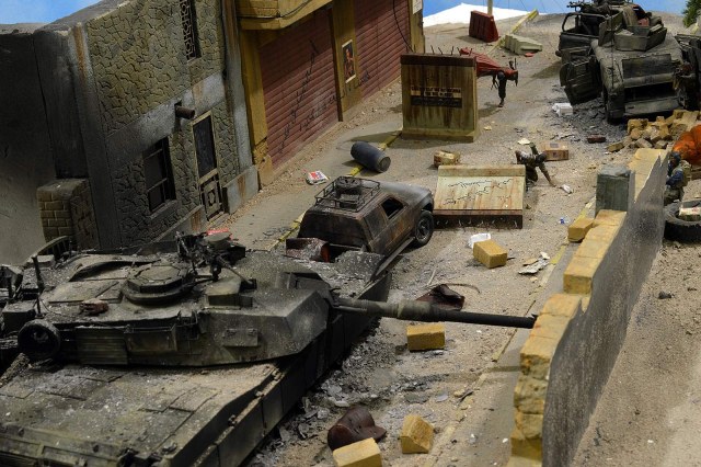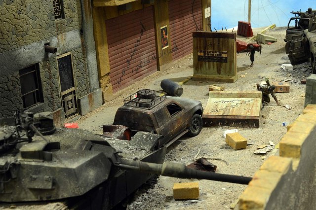 Однако, посмотрев фото, сделал вывод, что вид он имеет очень близкий к тому, как выглядит настоящий сгоревший "Абрамс", а остальное - то детали. Рассматривал прямо-таки сопереживая даже ВСЕМ действующим лицам: в диораме здоровски передана динамика столкновения, чувствуется что приоритет у иракских сопротивленцев, но действовать им надо очень и очень быстро, что они и делают.