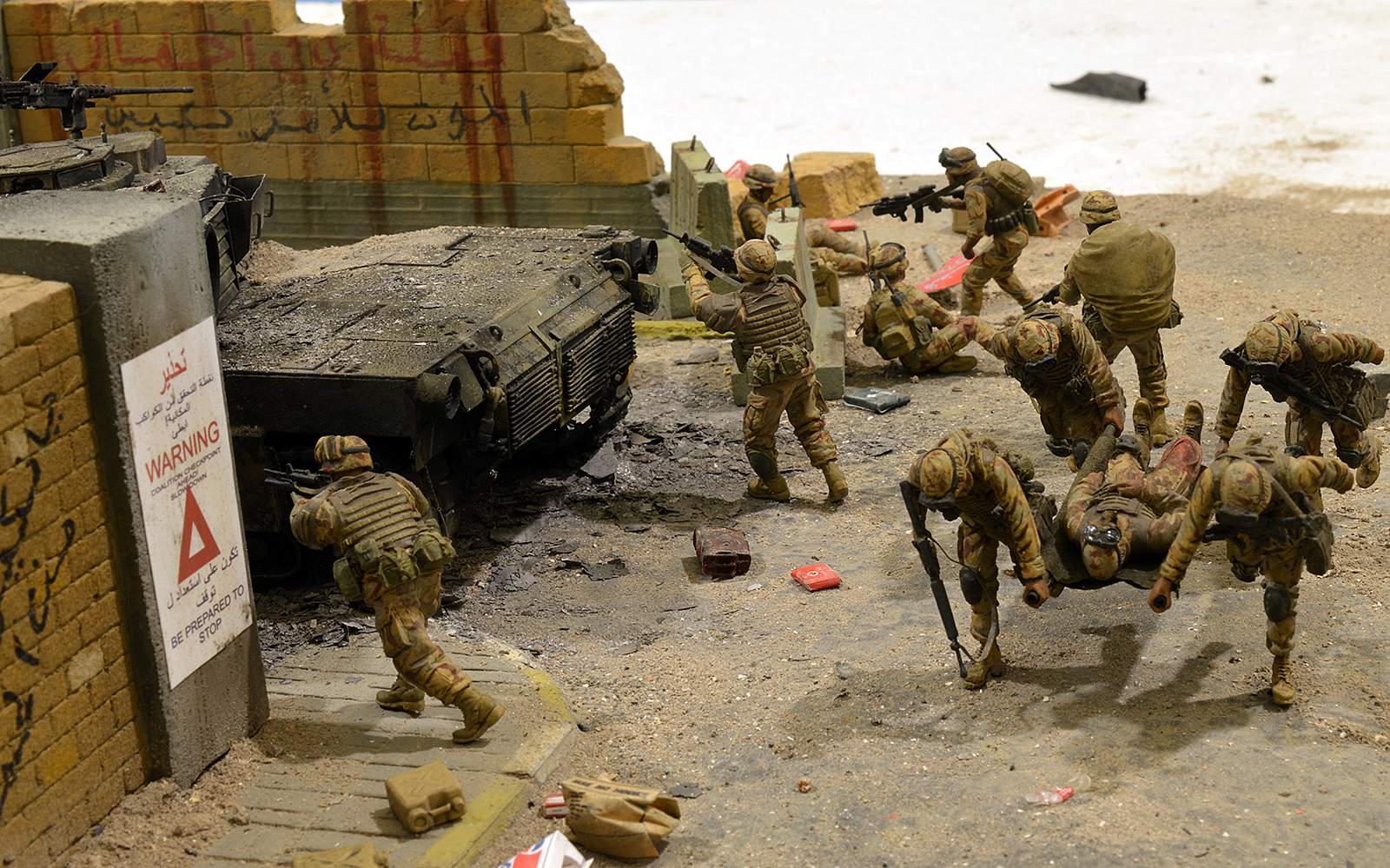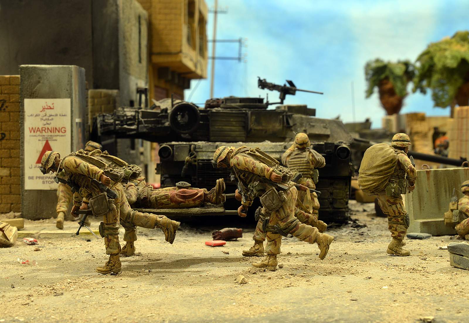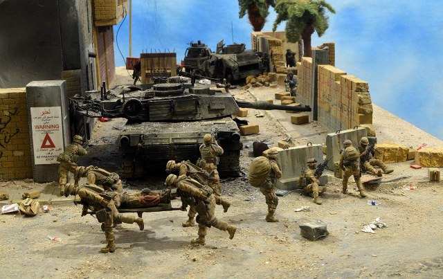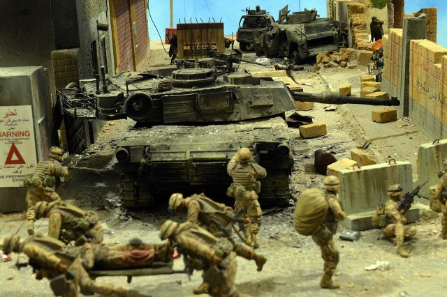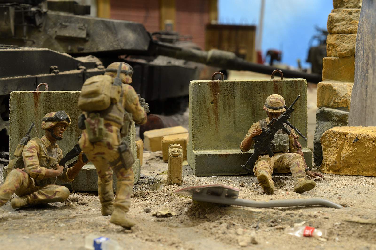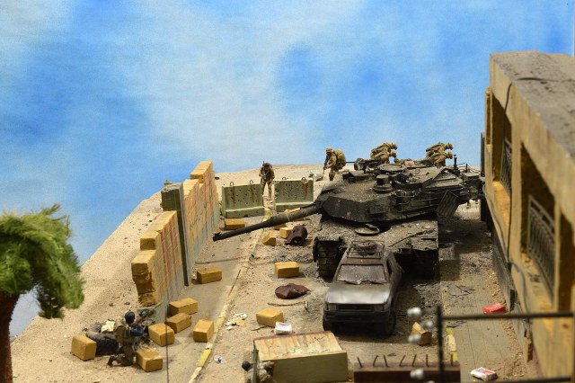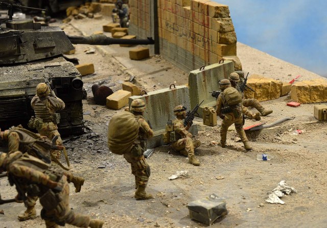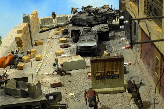 Однако, посмотрев фото, сделал вывод, что вид он имеет очень близкий к тому, как выглядит настоящий сгоревший "Абрамс", а остальное - то детали. Рассматривал прямо-таки сопереживая даже ВСЕМ действующим лицам: в диораме здоровски передана динамика столкновения, чувствуется что приоритет у иракских сопротивленцев, но действовать им надо очень и очень быстро, что они и делают.