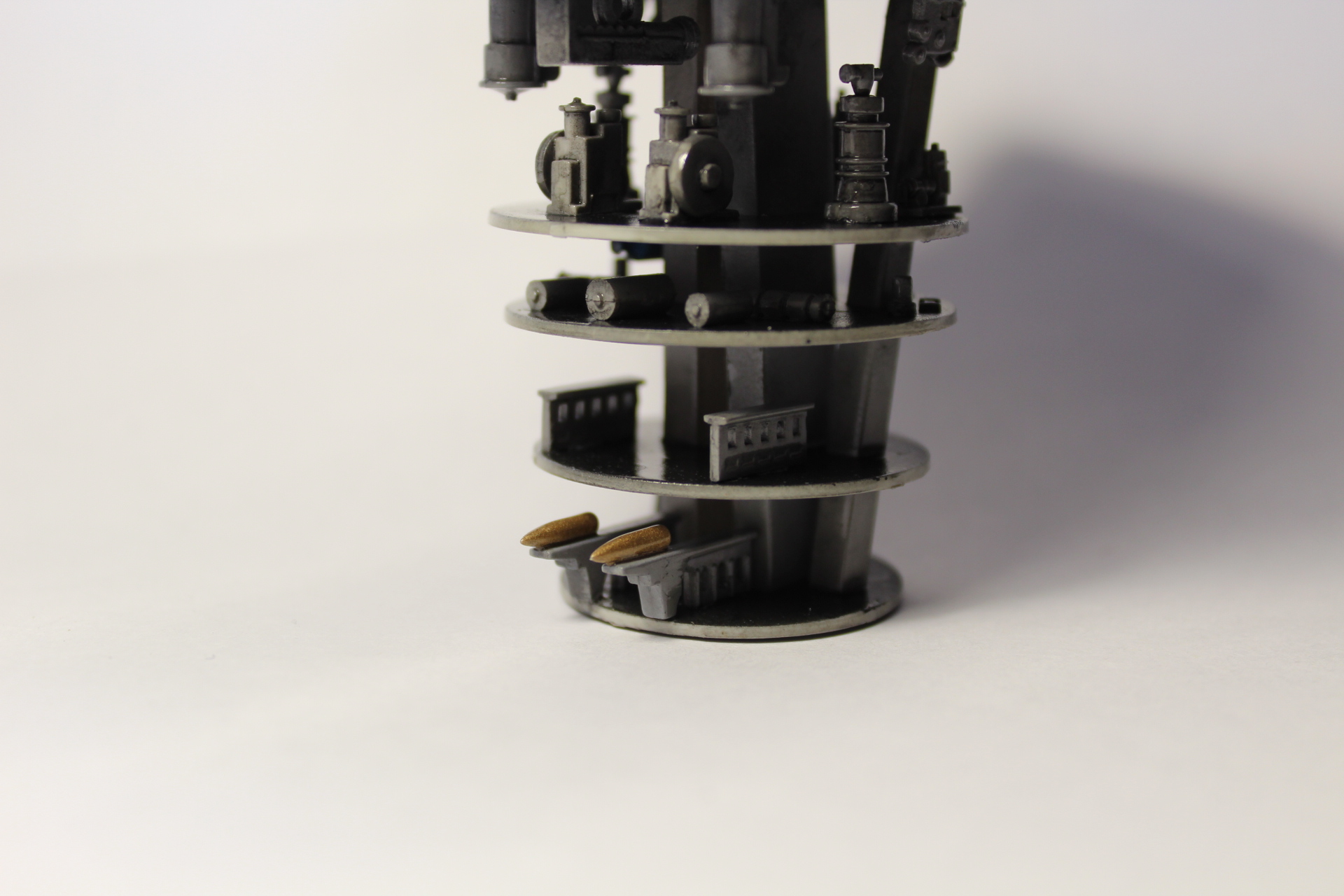 Это точно но косяк Трумпетера в том что должной схемы окраски не представляет и оставляет весь геморрой по окраске самому моделисту , фотографий окраса самой башни я не нашел так что отталкивался от аналогичного берегового орудия ,сам Бисмарк строится потихоньку