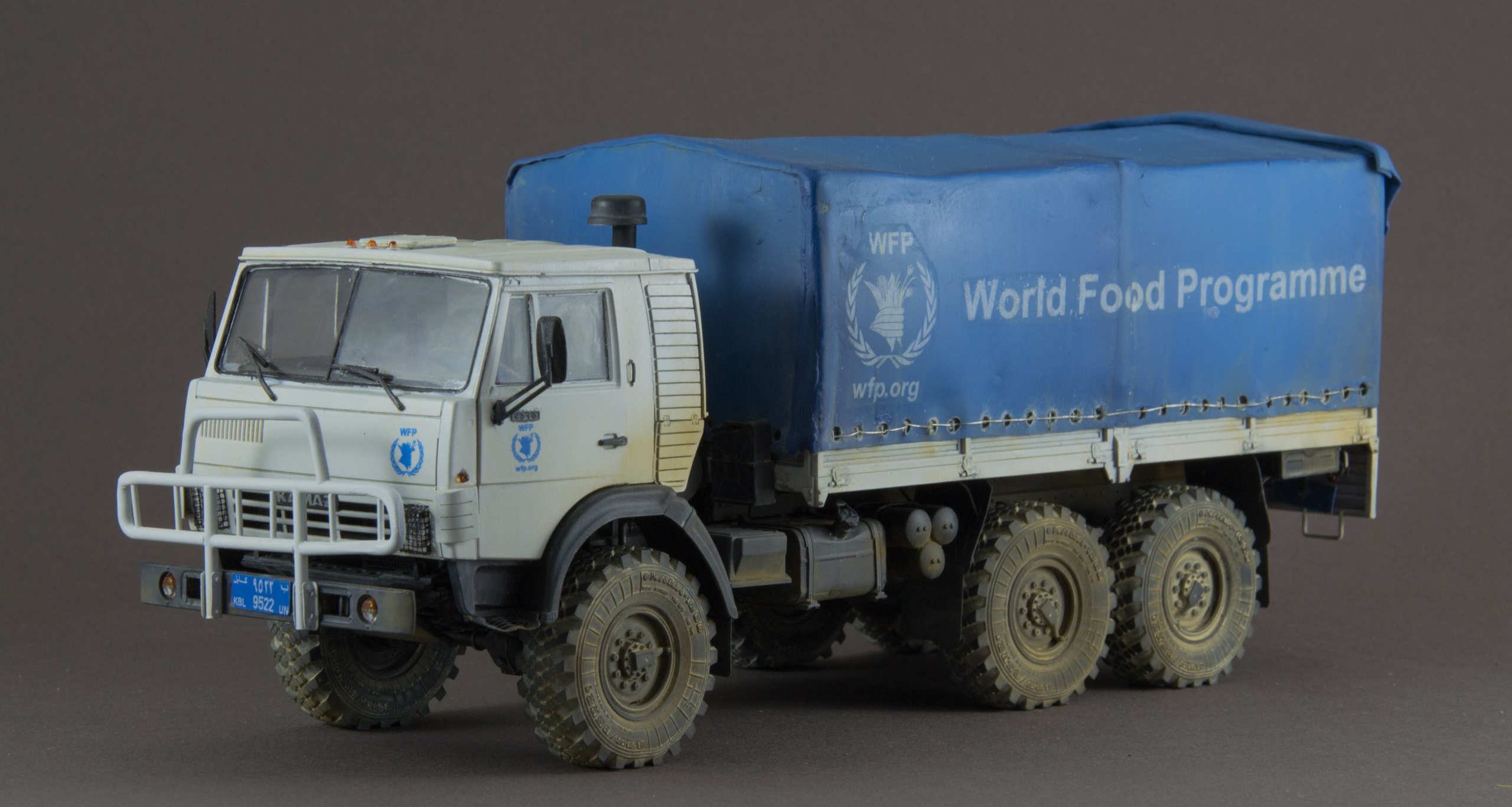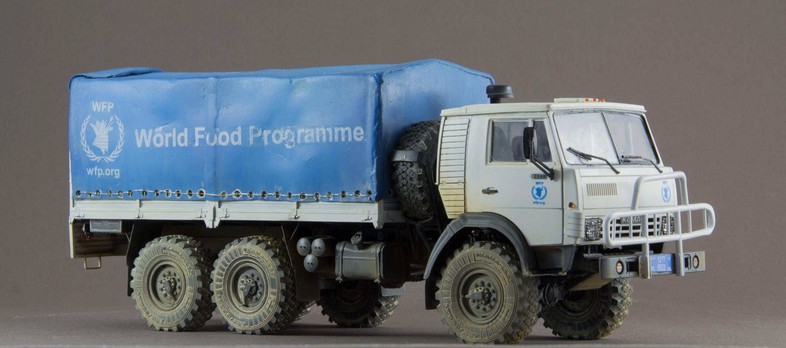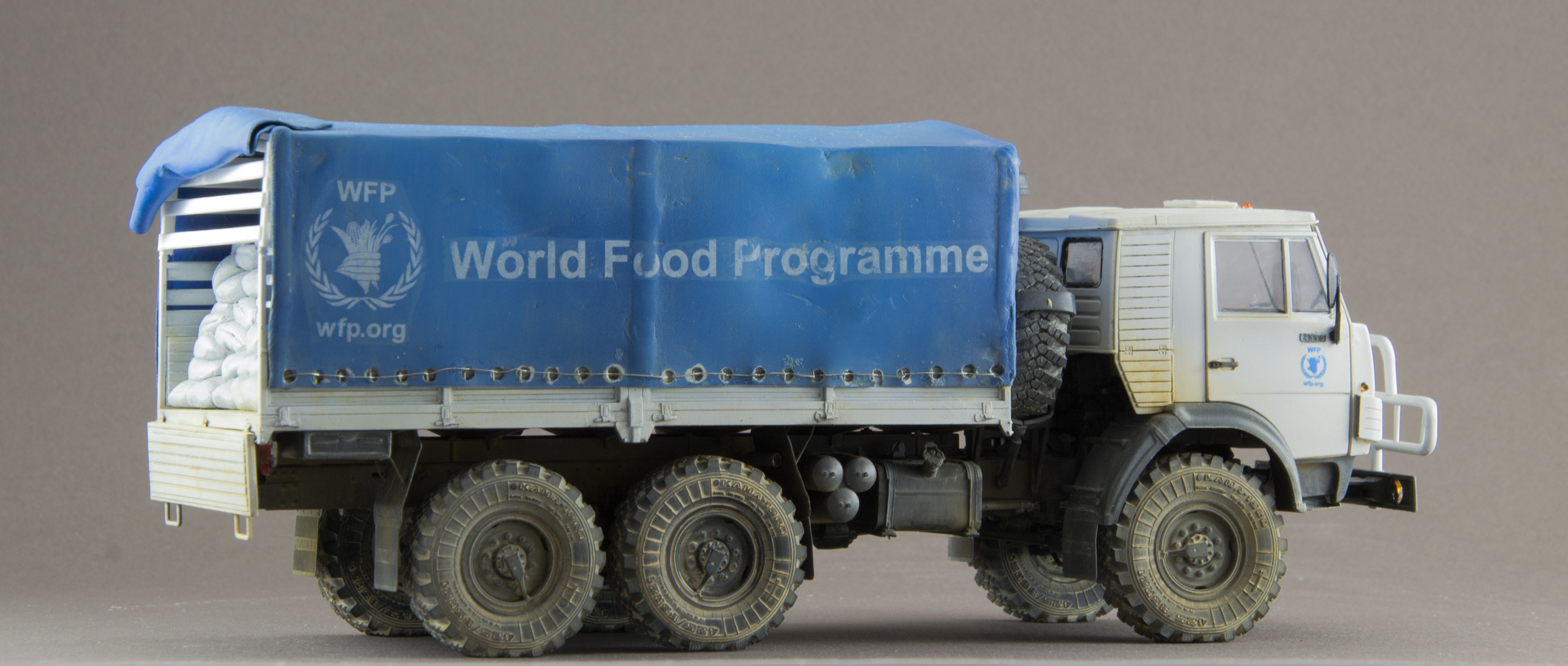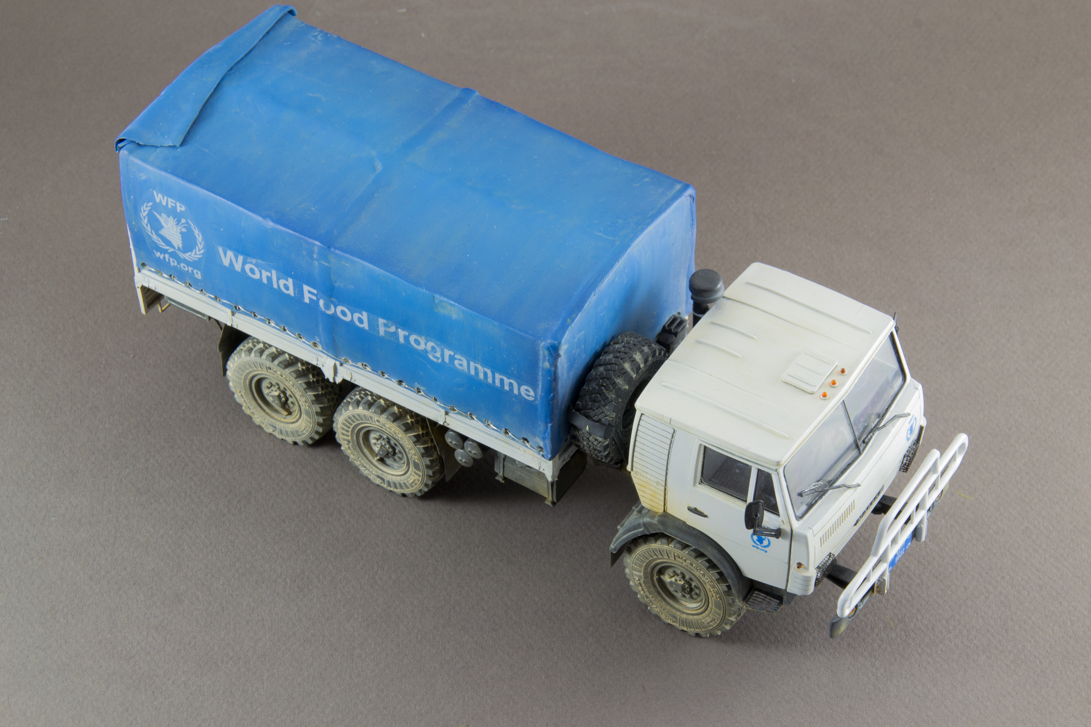 Камаз Всемирной программы продовольствия (WFP). Не люблю грузовики, но достался мне Камаз, красить в армейский зелёный совсем не хотелось, хотел белый ООН, получился белый WFP.