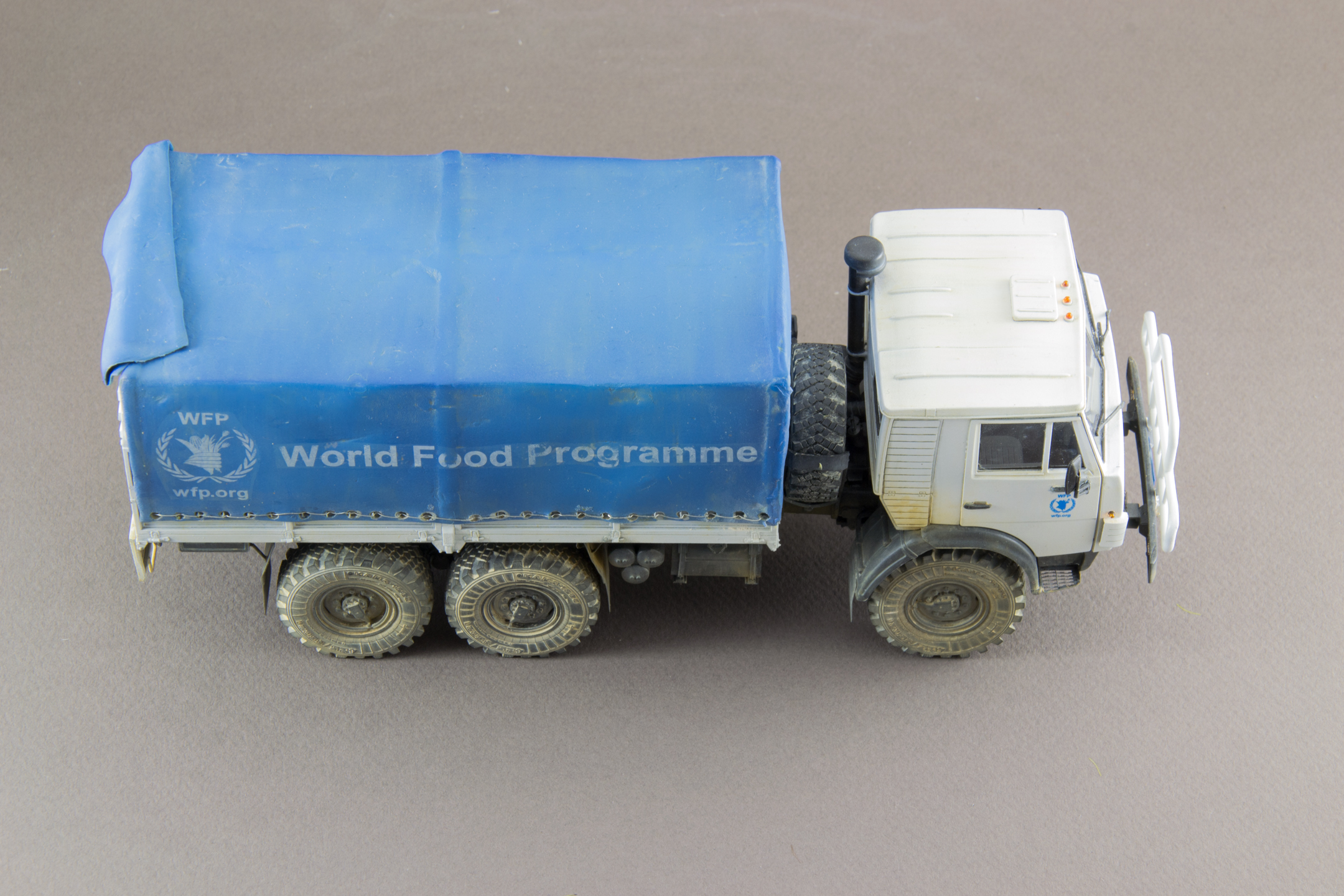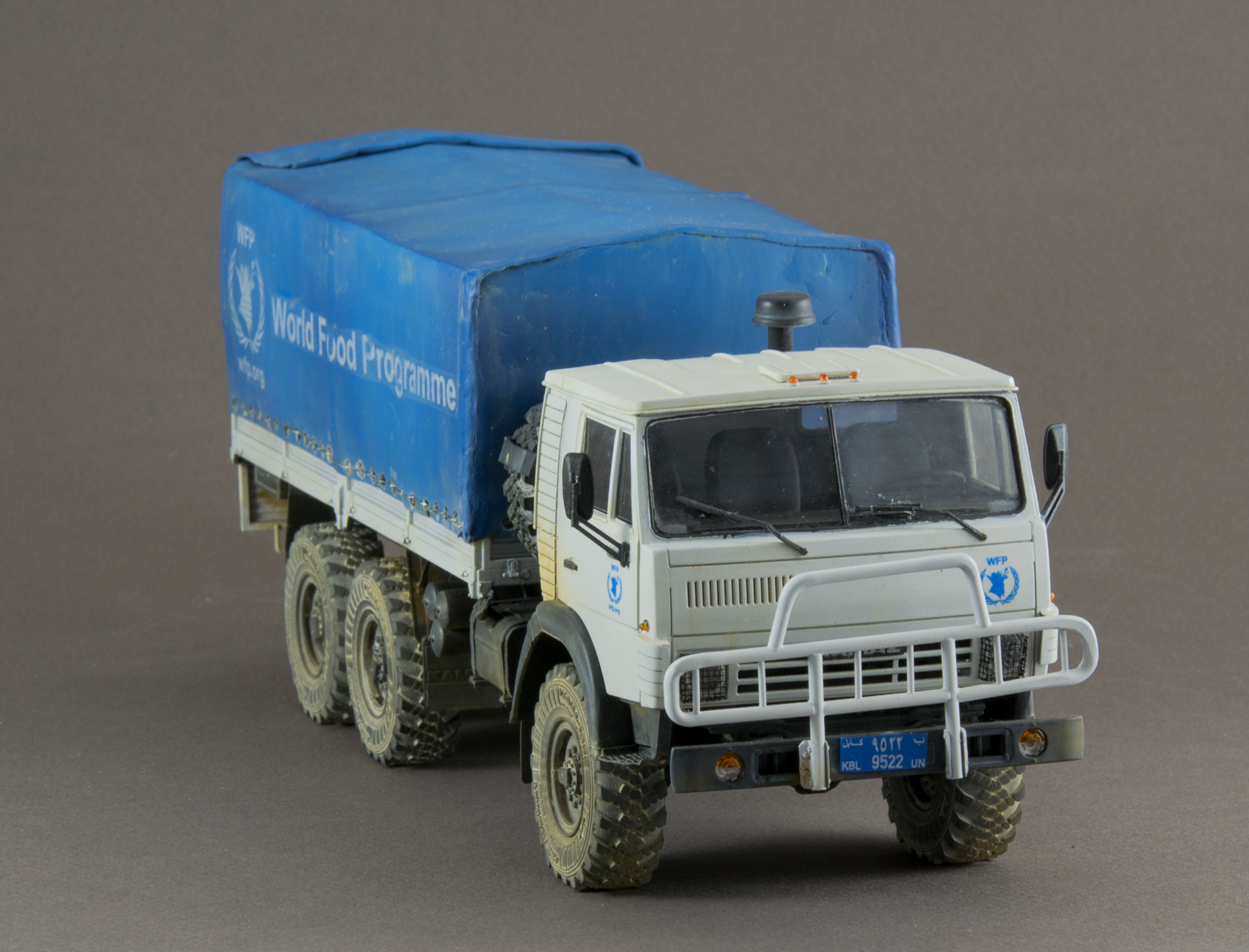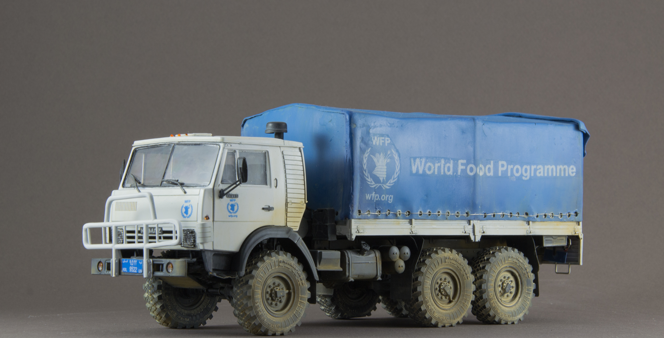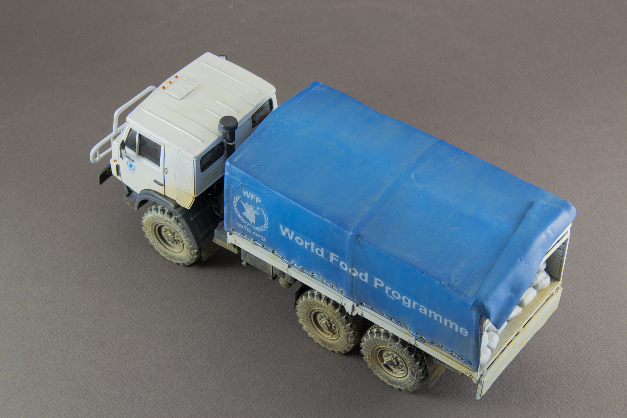 Камаз Всемирной программы продовольствия (WFP). Не люблю грузовики, но достался мне Камаз, красить в армейский зелёный совсем не хотелось, хотел белый ООН, получился белый WFP.