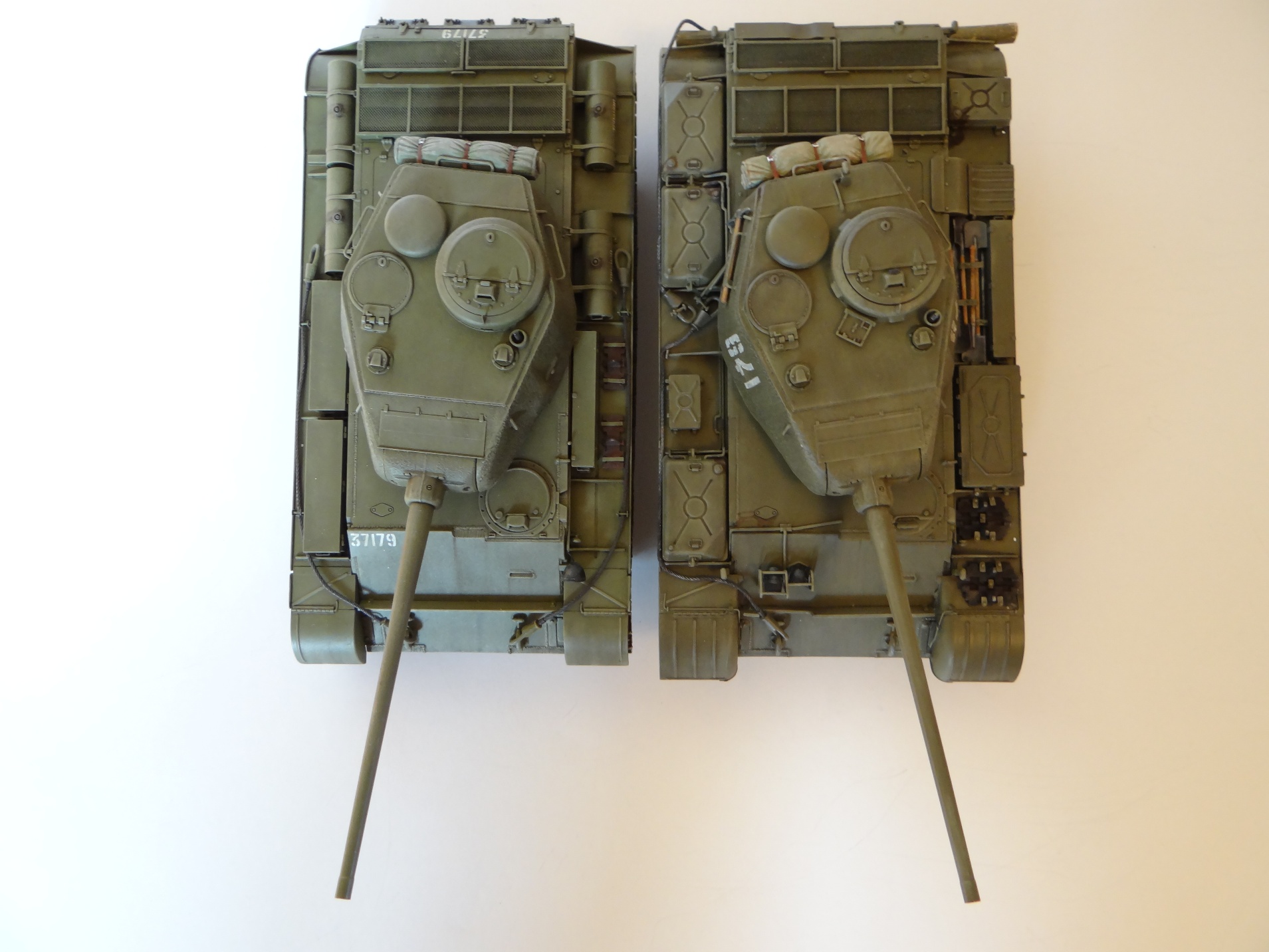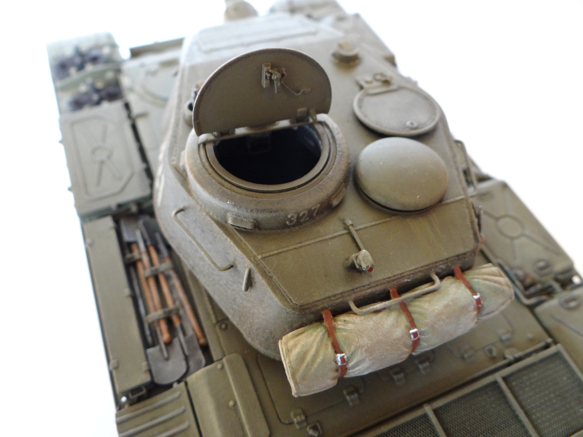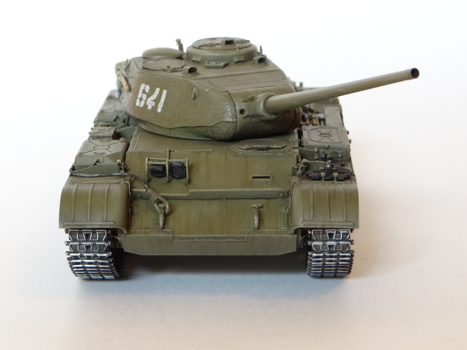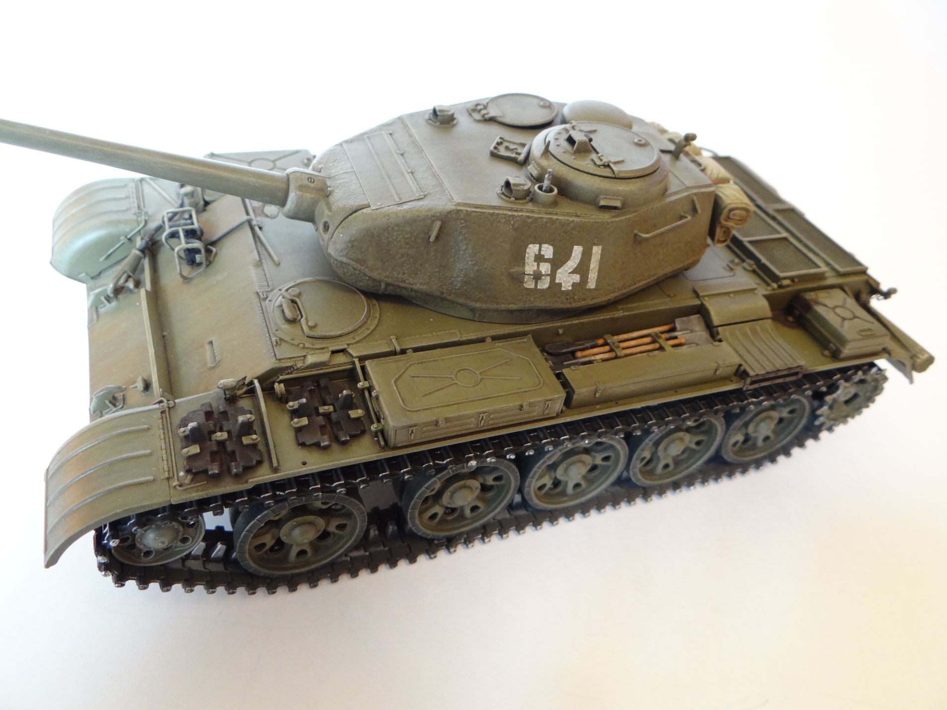 Снаружи красил МИГовским защитным зеленым, для послевоенной техники. Смывка и высветления прилагаются.