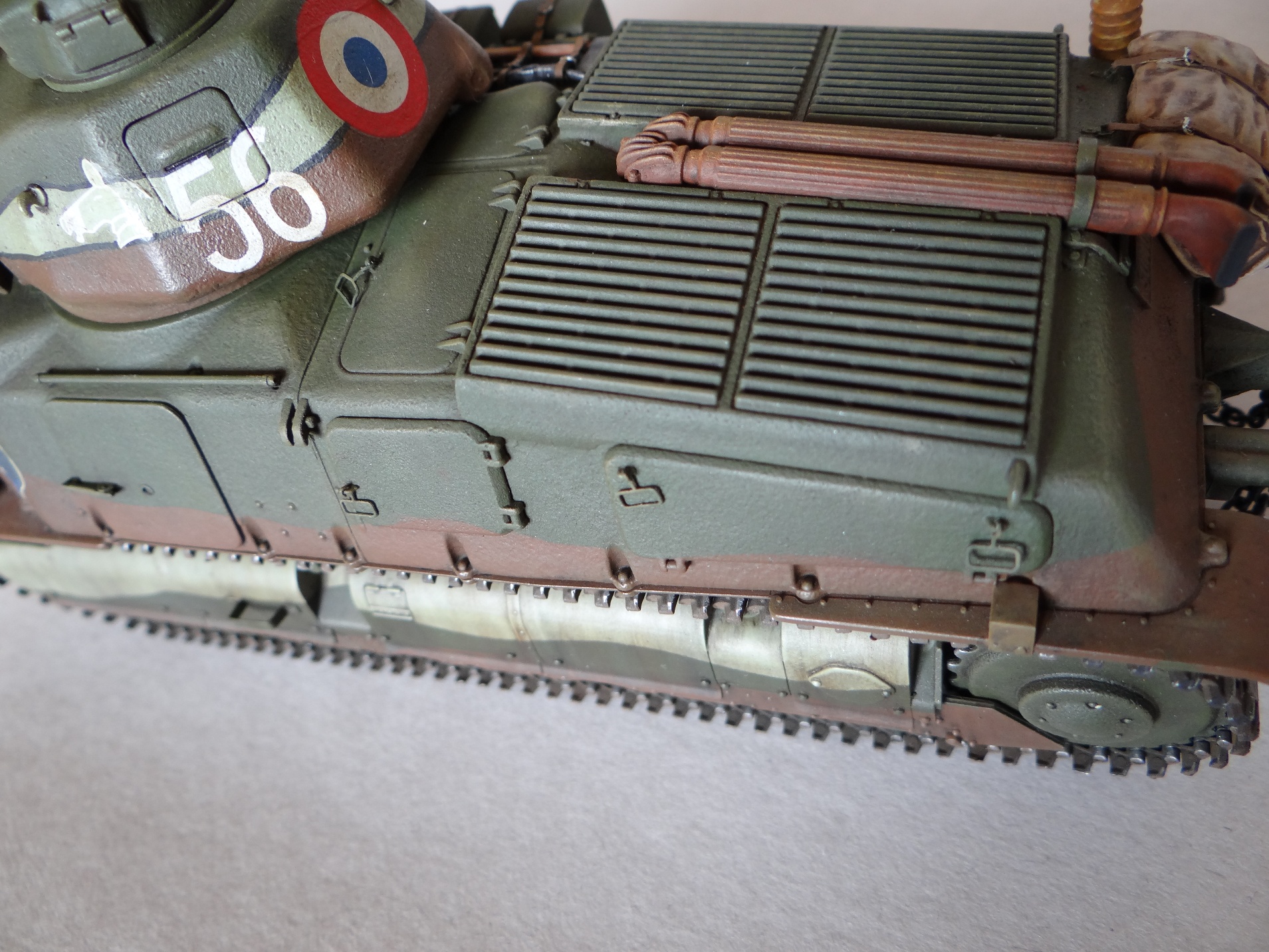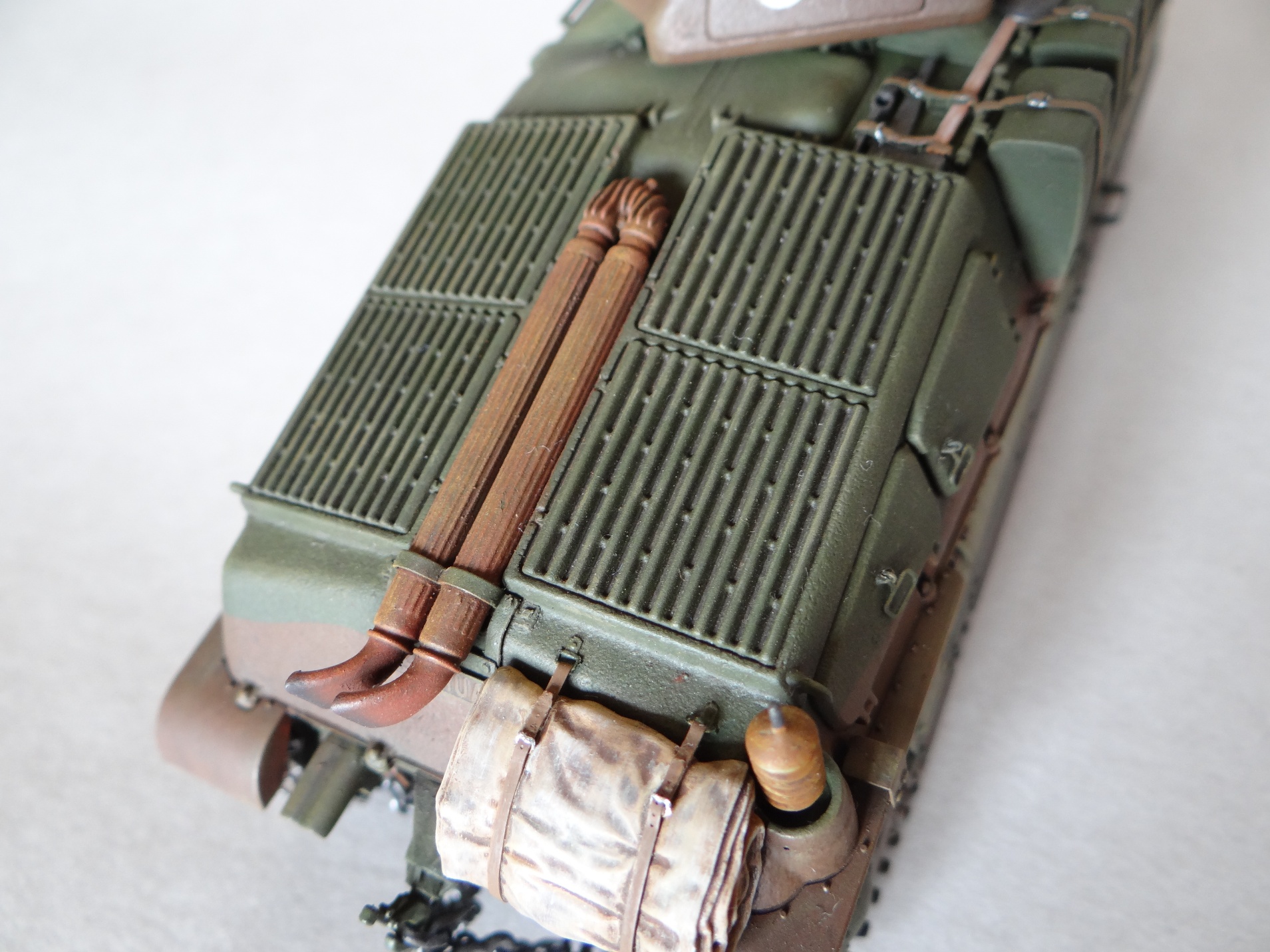 В целом это очень качественная модель, ее портит лишь реальная необходимость доработки афтемаркетом. Отсутствие сетки фары, бокового смотрового прибора мехвода, отлитые на люках ручки и отсутствие ремней шанца, отсутствие минимального травления, здорово снижают ее ценность как масштабной модели техники.