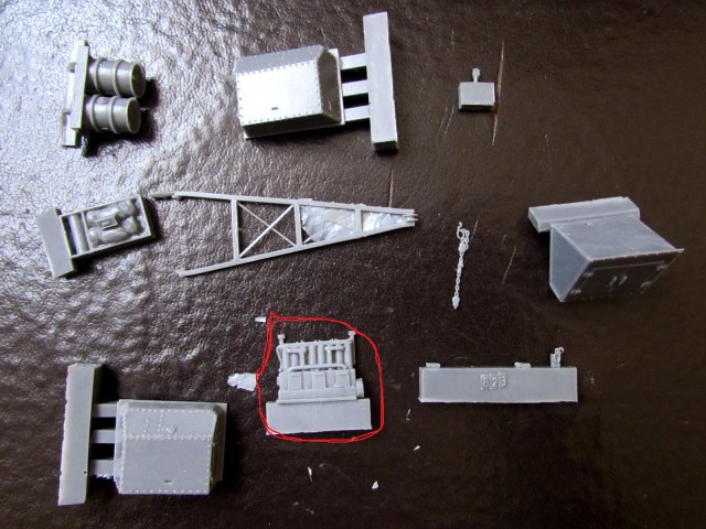 Деталей не так уж и много - спонсоны, новая корма, корзина с вещами на крышу, и детали крана.