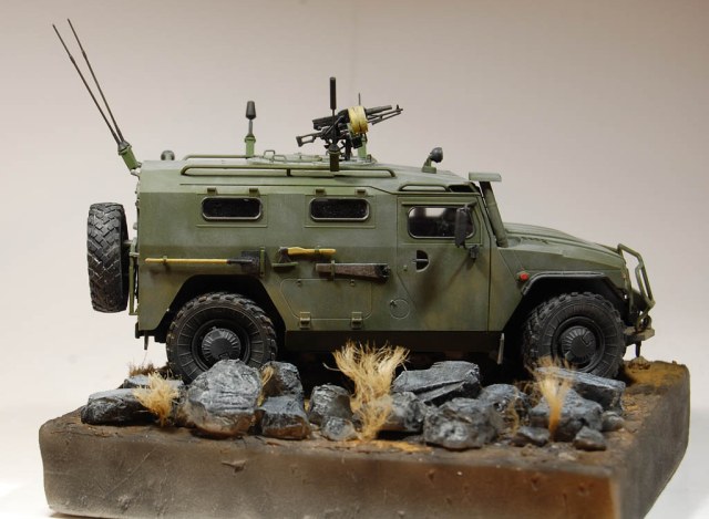 неправильно стоит покрышка одна, и раз уж это диорама - то колесья больно чистые...!