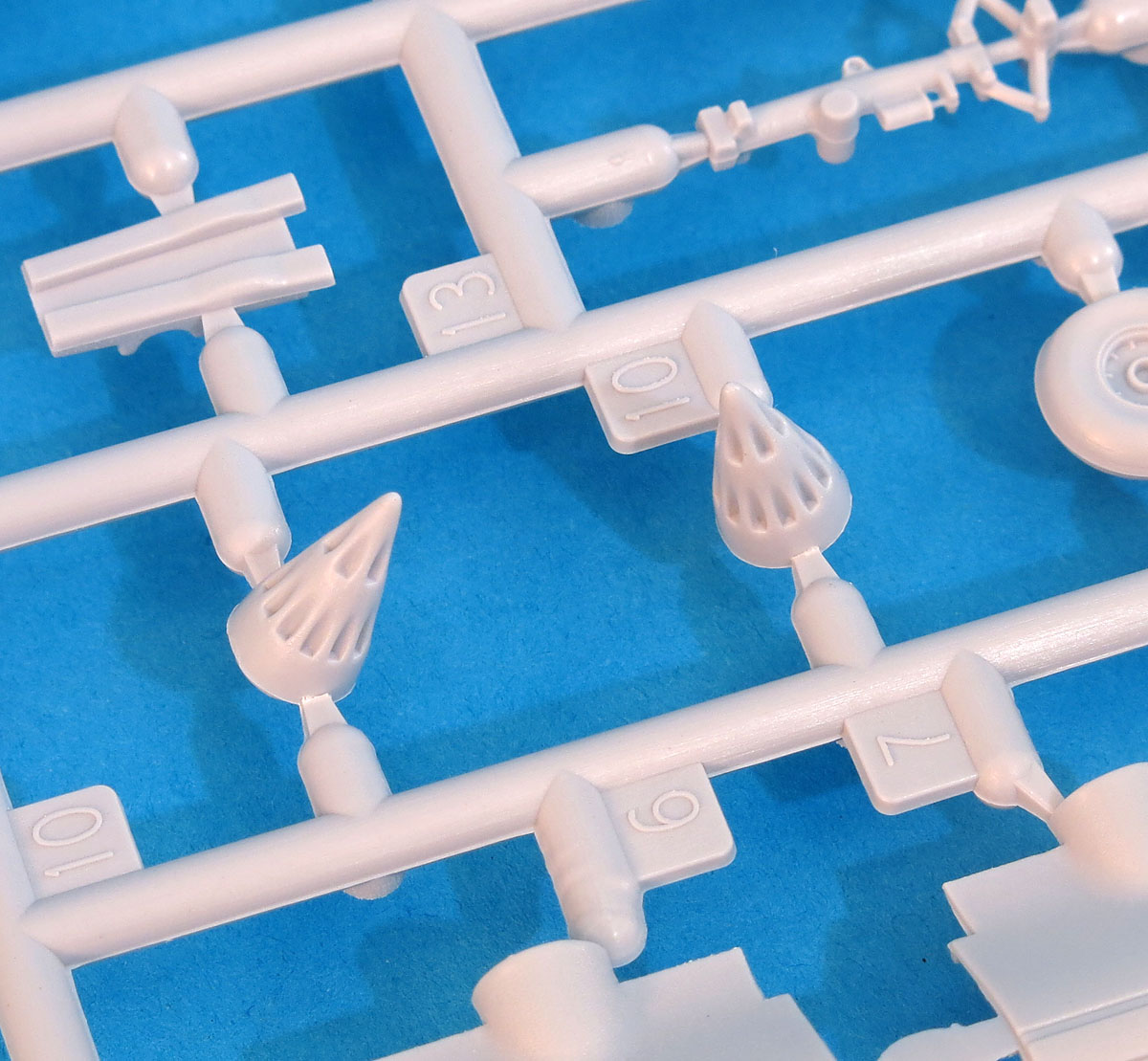 1. Добрые полмодели. Две половинки фезюляжа от крыла и до хвоста, две половинки носовой части, горизонтальнео оперение, пилоны, ракеты и бомбы и т.д.