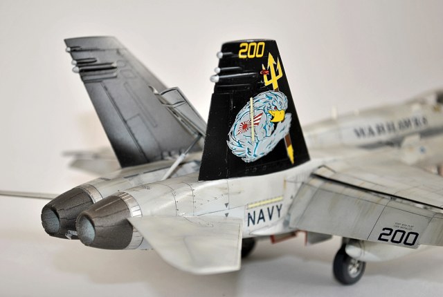 В целом хорошо. Сопла только игрушечные... ну нет в них живости. Хотя у Хорнета они не сложные по конструкции, но вот расшивка на них больно груба (конская для Матвея)) ), что и портит их вид.