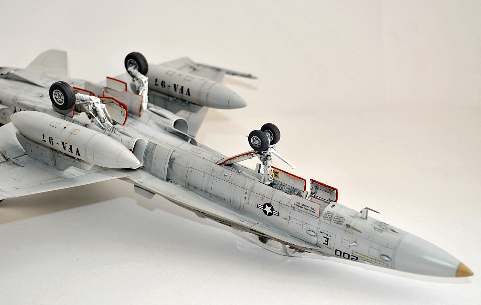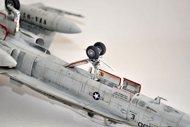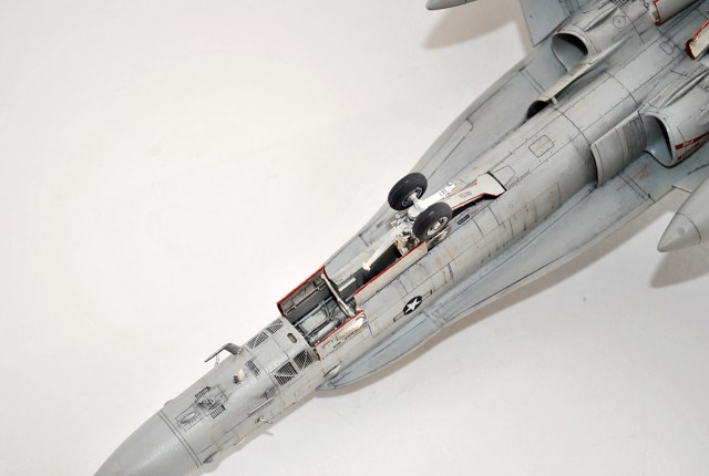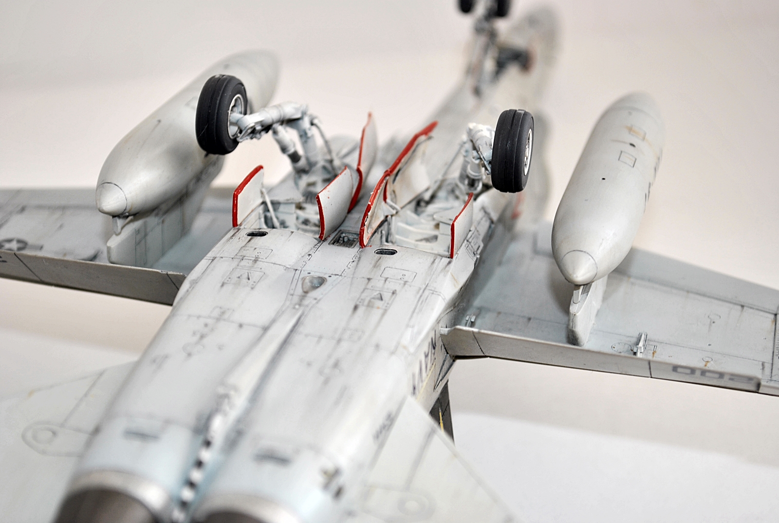 Я заранее извиняюсь, но на что смотреть в Вашем самолете? Такая же мешанина с модификациями. Есть промахи с прочей матчастью. Серьёзный косяк с подвеской. Сама модель, извините, грязная до невозможности, а не тонирована, даже принимая во внимание, что летавший палубник. Совсем не образец для ориентира.