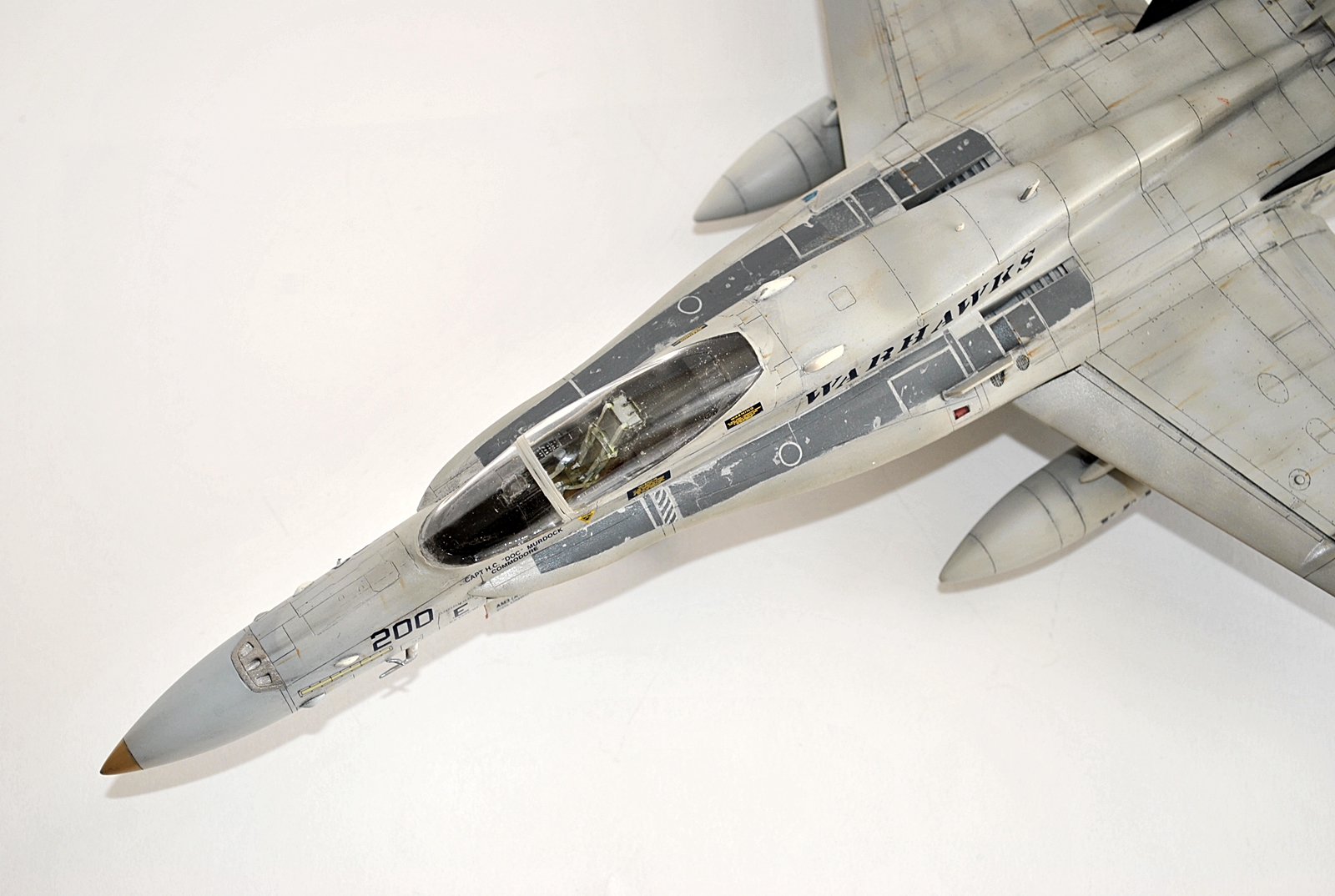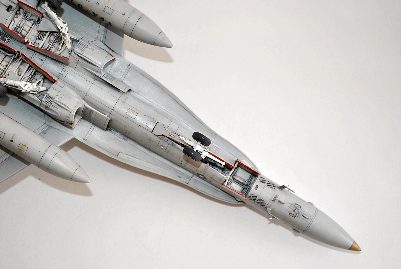 У Вас за фонарем два наплыва антенн и снизу за воздухозаборниками перед нишами два наплыва антенн, которые на модификации С не нужны. А за этими наплывами снизу не решетки вентиляции, а блоки с тепловыми ловушками, которые не могут быть окрашены в цвет низа самолета. Штырьки на носовой части под строевыми огнями не должны быть наклонены по полету как усы. Это датчики угла атаки, они должны быть перпендикулярны бортам.