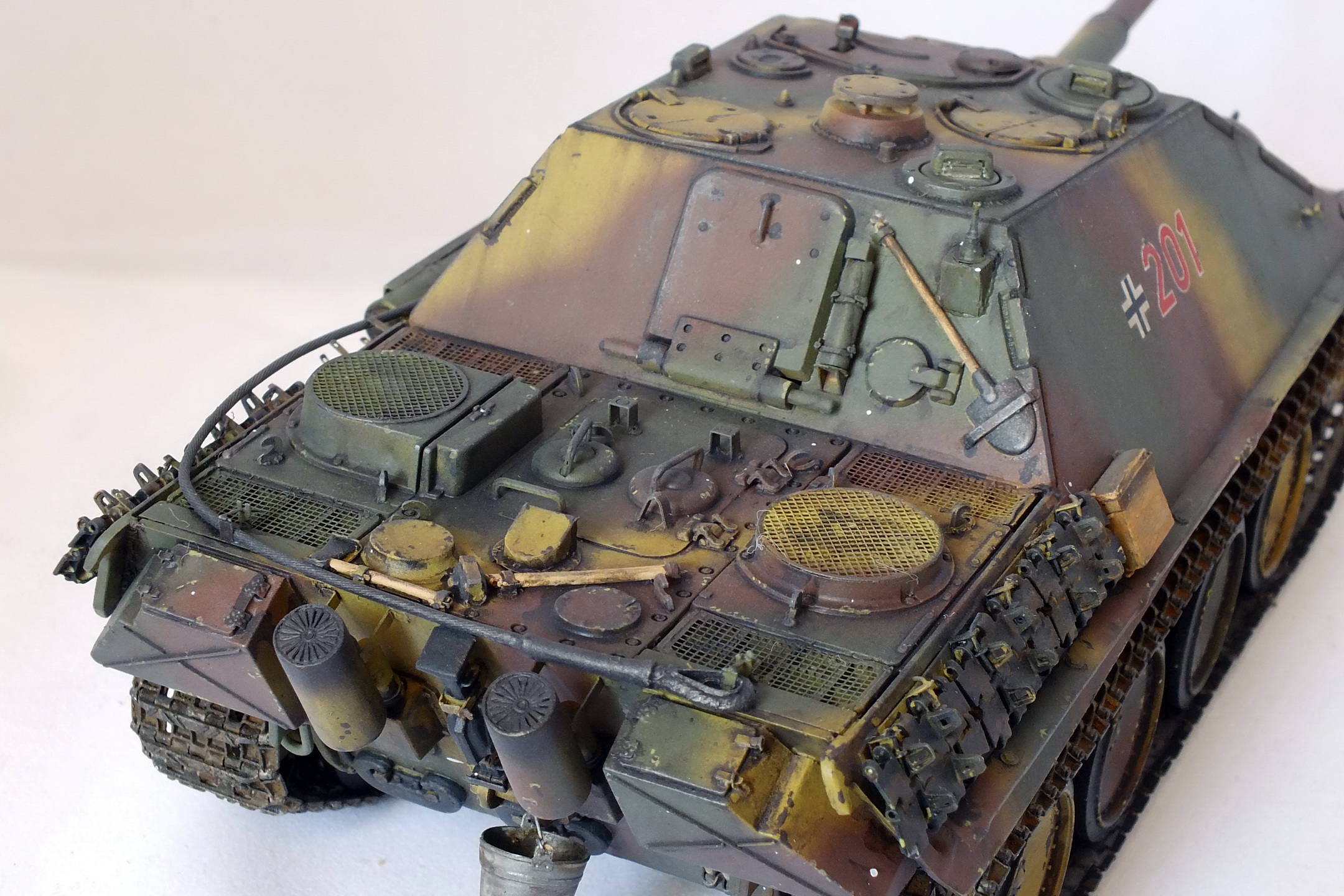 При сборке использовались- фототравление "Эдуард", ствол РБ, траки "Мастерклаб" (смола). Добавил немного сварных швов. Не очень удачно получились смотровые приборы.Окрашивал АКАНом и Пацифик.