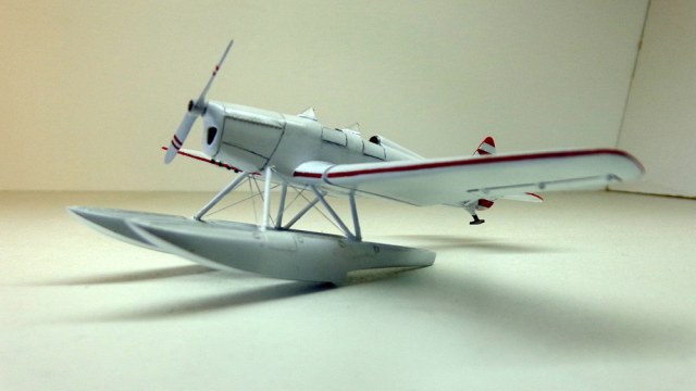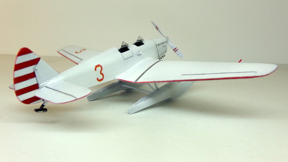 О модели. Кому интересен незамысловатый процесс, то можно здесь посмотреть http://karopka.ru/forum/forum189/topic26201/ Если честно, то мне хотелось конечно же АИР-10. Я уже предвкушал появление у себя на полке этой модели в серебристо-красном окрасе. Эффектно же, правда? Но всё чаще закрадывались сомнения, получится ли? Сложная окраска, да ещё поплавки с растяжками? А не попробовать ли что попроще? Например, этот "самолет №20"? Целиком белый, можно избежать возни с масками, да и ситуация с расчалками может без заморочек пройти. В общем в результате получилась такая модель. Не шедевр, но по-моему симпатично? Подарок самому себе на ДР.