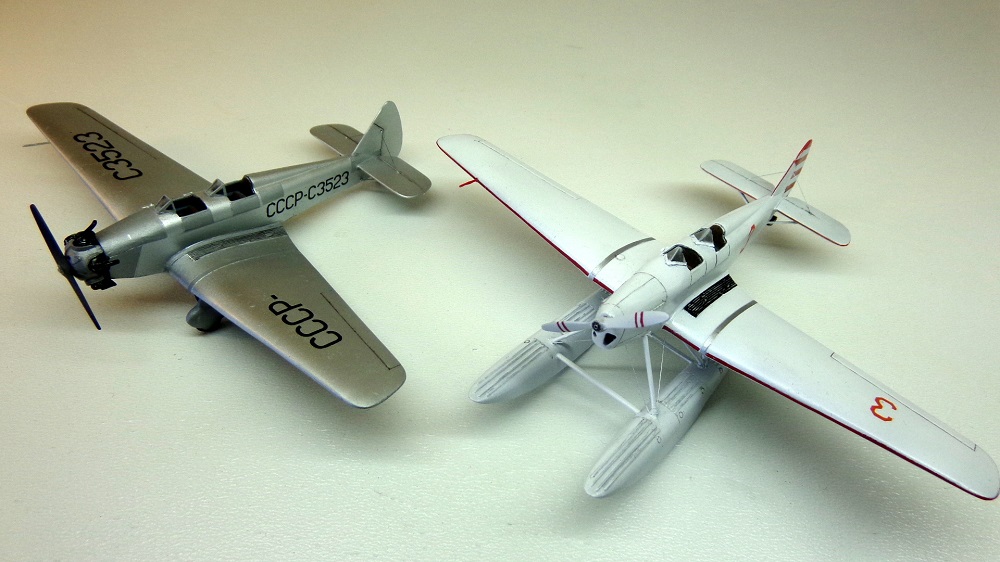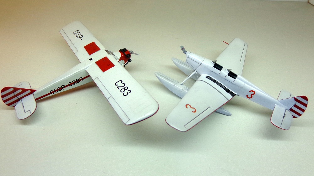 P.S. Так как модель на поплавках на полке принимает неестественное положение в окончательном виде я установил её на подставку, предварительно посадив в кабины "экипаж".