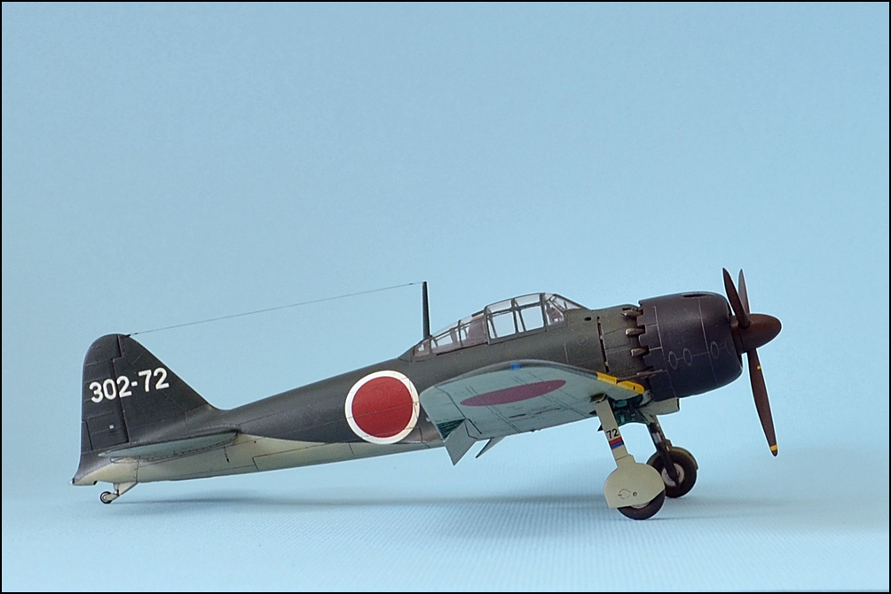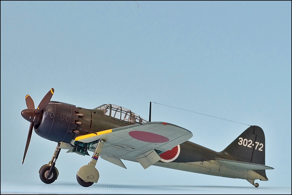 Я не могу бороться с Вашими стереотипами. Согласен, многие коллеги делают и делали Зеро ободранными "в хлам". Я не знаю откуда такие устойчивые предубеждения. Скорей всего виной тому фотографии с послевоенных свалок, где грудой навалена японская техника. Там и Зеро и Рэйдены и двухмоторники. Такое большое ободранное пятно, но если посмотреть, то даже на этих свалках Зеро выделяются как наименее сколотые. Смотрите фото боевых, действующих пятерок, снятых японцами. Таких фото море и может тогда Ваше мнение поменяется. Кстати выхлоп, как это принято рисовать на модели закопченой полосой я тоже не видел на фото. На моей модели износ ЛКП в районе патрубков и местах хождения персонала изображен. Хлопуны должны быть на Зеро, но это уже совсем другой масштаб работы над моделью. Щитки из набора, просто доработанные. Полоски по инструкции две.