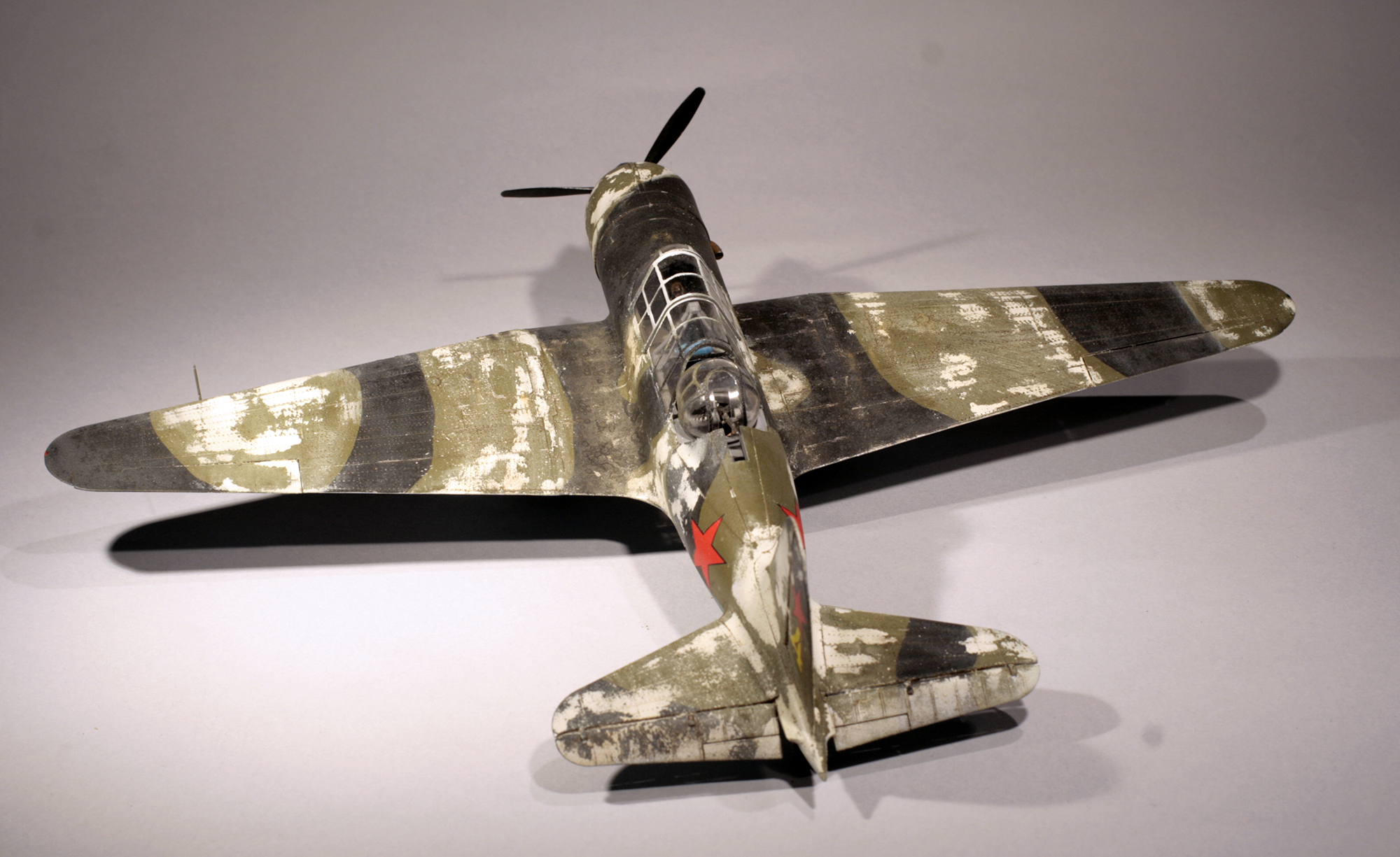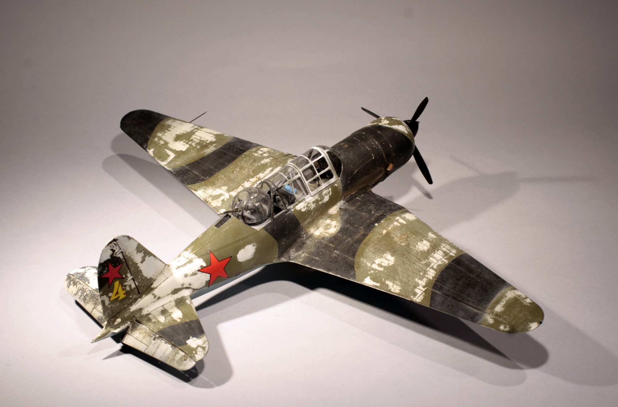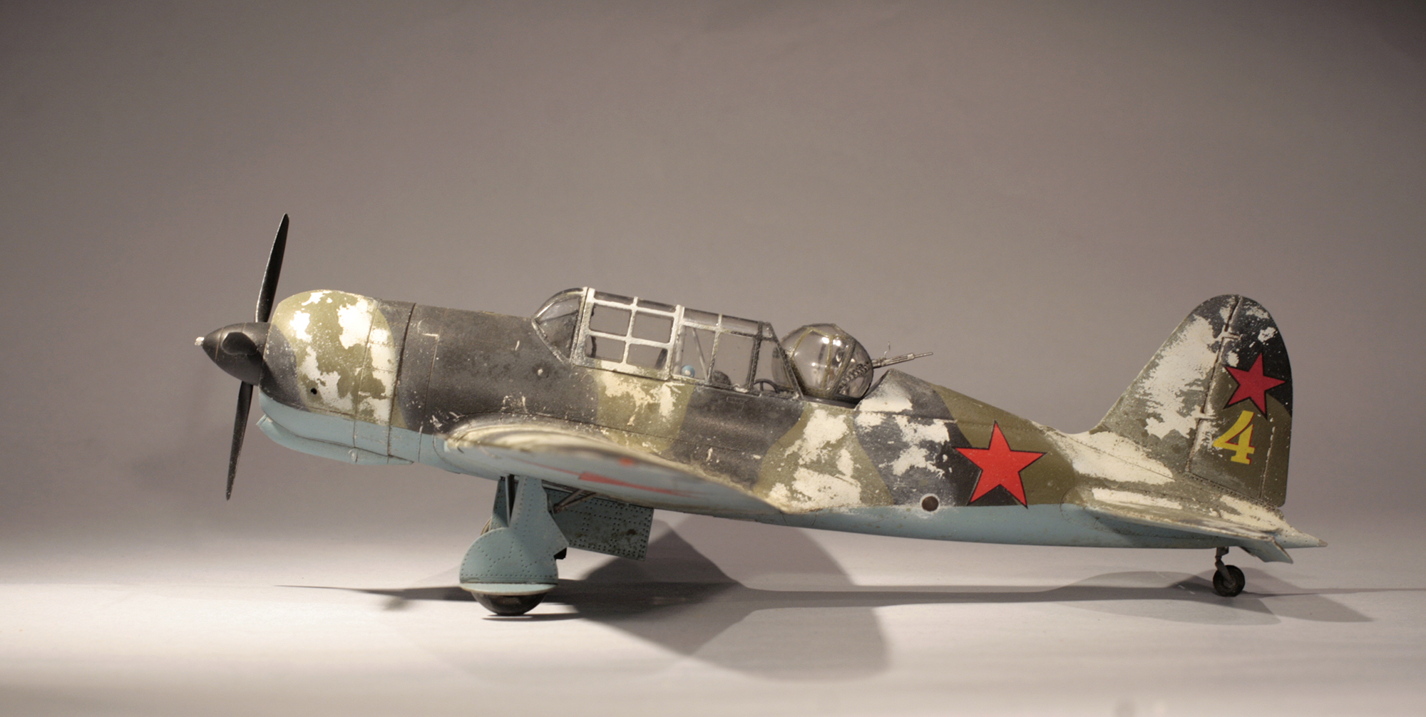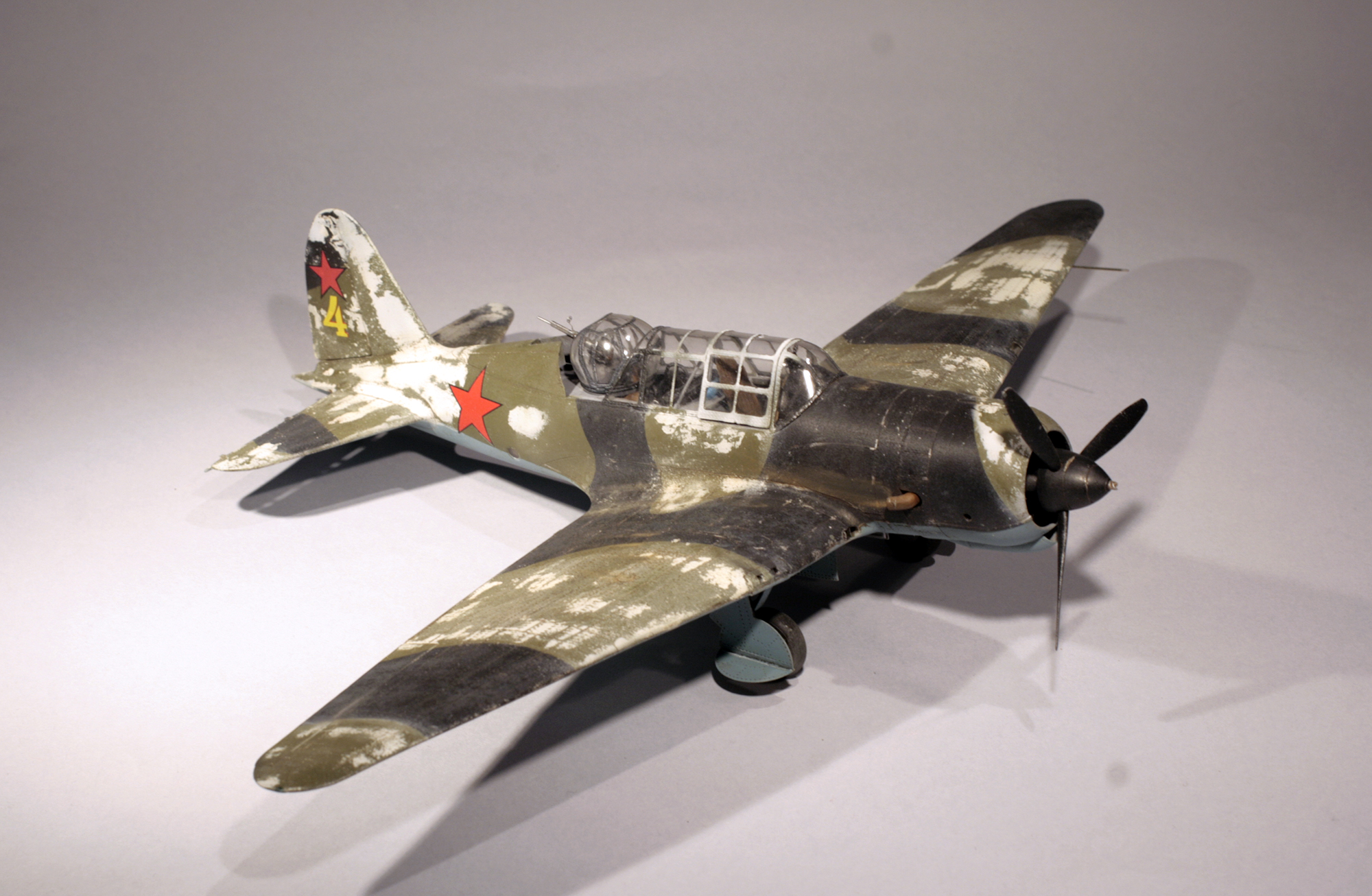 А разве в итоге получилось не нормально?) Вообще матового лака на модели один тонкий слой. Но да, именно мат, а не полумат. Просто кроме облезшего зимника я изобразил и износ летнего ЛКП. Поскольку в итоге я и хотел получить облезшую и изношенную Сушку, для контраста с прошлой "серебристой" моделью.